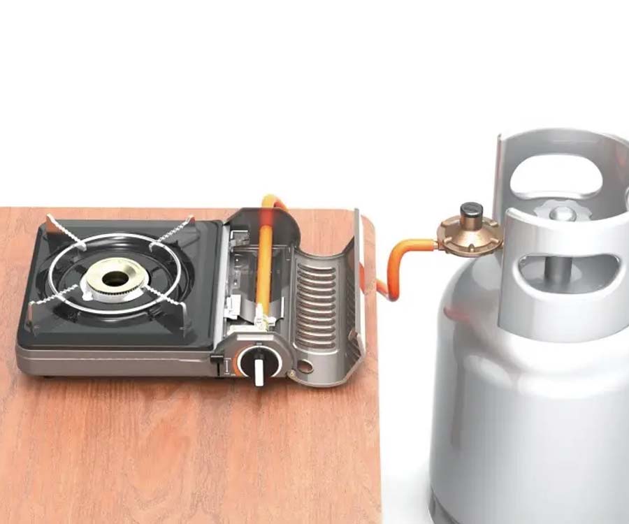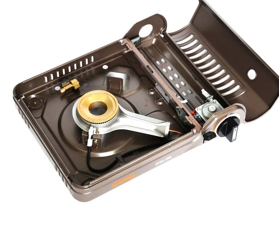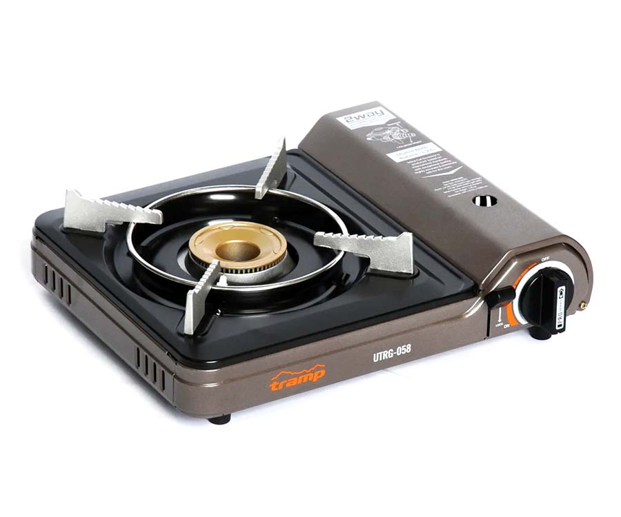 Tramp UTRG-058 – универсальная портативная газовая туристическая плита, работающая и от газового картриджа, и от «большого» бытового пропанового баллона (LPG).