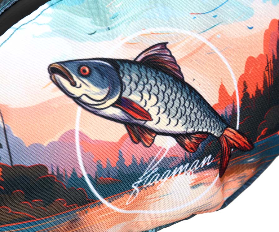 Поясная сумка Flagman – многофункциональная сумка-бананка, которая сшита из прочного износоустойчивого материала Оксфорд 300D с водоотталкивающими свойствами. Изделие имеет два отделения, оснащено двусторонними молниями и качественной фурнитурой. Сумка Flagman удобно крепится на пояс при помощи регулируемого ремня с качественной застёжкой фастекс. Сумка на пояс от Flagman оформлена красочным изображением рыбы – окуня, карпа, плотвы и т.п. – в её среде обитания. Она не только подчеркнёт вашу индивидуальность, но и станет полезным атрибутом как на рыбалке, так и в повседневной жизни.