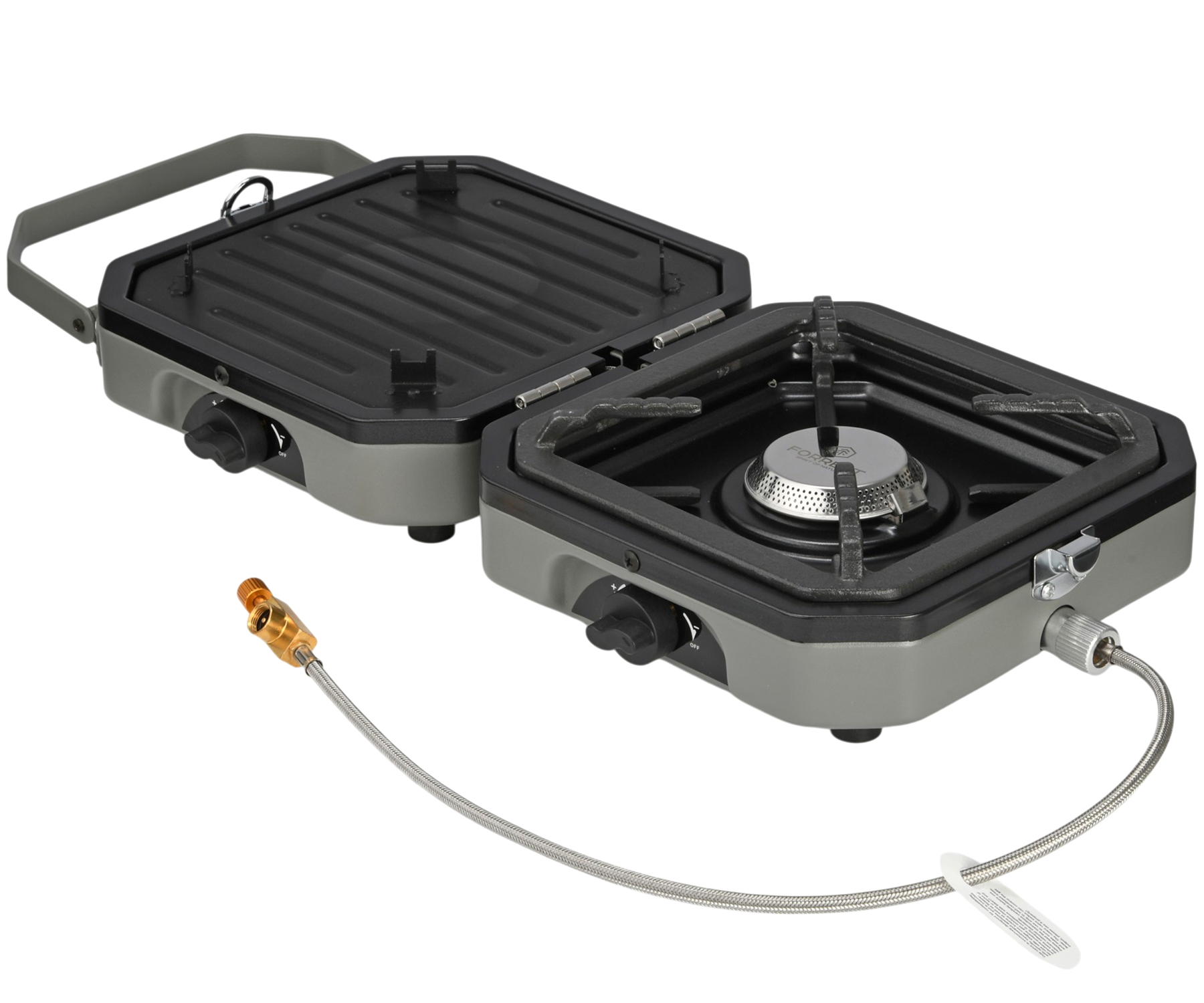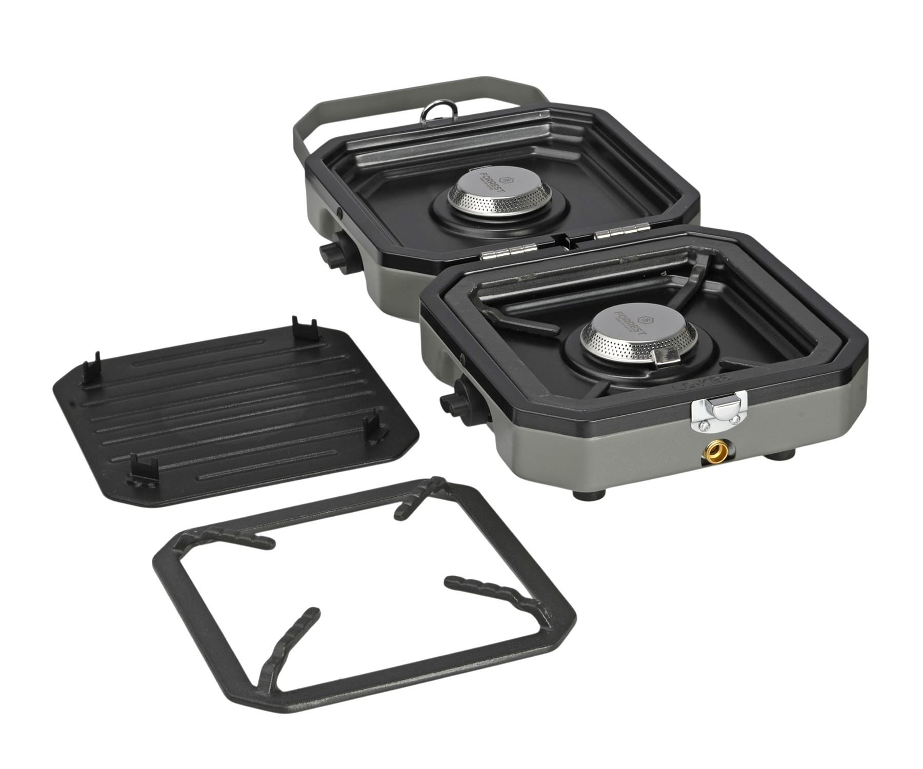 Портативная складная газовая плита Forrest Camping Gas Stove FCGS-46 с выносным баллоном – универсальное решение для кемпинга, рыбалки, туризма, дачи и путешествий. Уникальная газовая плитка Forrest Camping Gas Stove оснащена двумя конфорками и дополнительной антипригарной гриль-поверхностью для любителей готовки кулинарных изысков и разнообразных блюд в полевых условиях. Мощность 3,6 кВт обеспечивает быстрый нагрев и эффективное приготовление пищи, а раздельная регулировка подачи газа позволяет точно контролировать интенсивность пламени на каждой конфорке. Складная конструкция делает туристическую горелку Forrest Camping Gas Stove компактной и удобной для транспортировки, а прочный металлический корпус гарантирует надёжность и устойчивость при использовании на природе. Модель совместима с туристическими газовыми баллонами, легко запускается и проста в эксплуатации, обеспечивая комфортное приготовление еды вдали от дома. В комплекте идёт специальный шланг для подключения горелки к газовому баллону + удобный чехол для хранения и транспортировки. Окунитесь в мир вкусных приключений с газовой туристической плитой Forrest Camping Gas Stove!