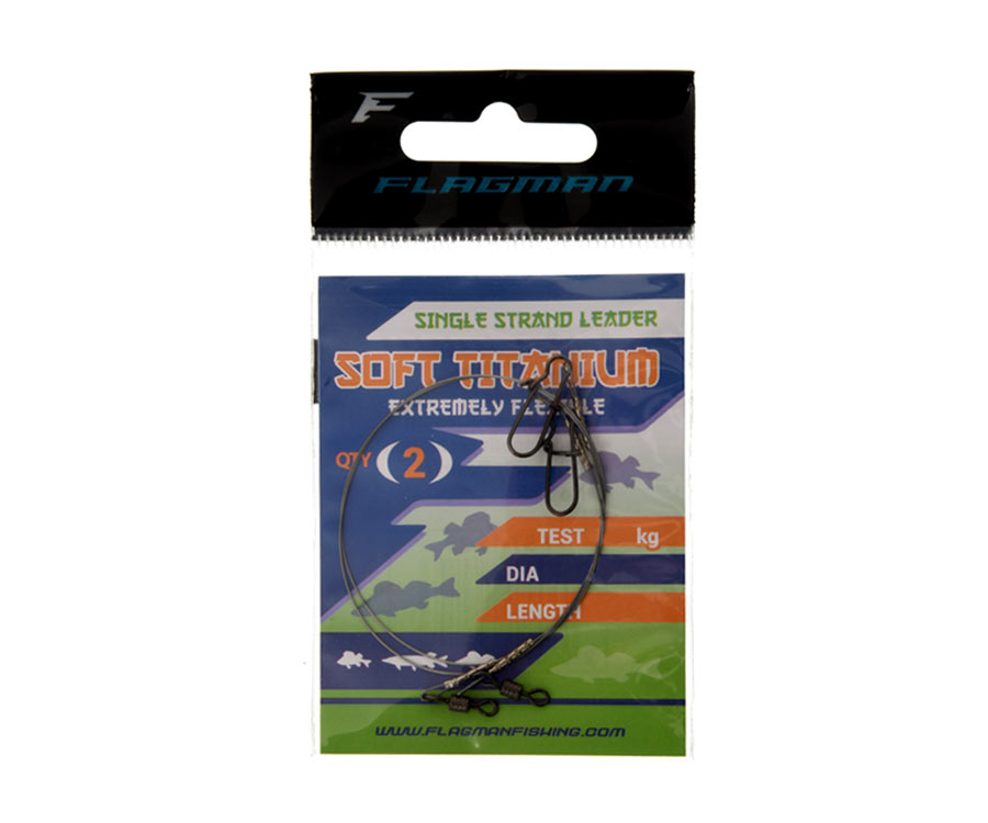 Flagman Soft Titanium – чрезвычайно прочный и тонкий поводок из титана, оснащенный вертлюгом и застежкой. Материал поводка обладает минимальной массой, невероятной прочностью и завидной долговечностью. Главное же его преимущество – абсолютная упругость и полное отсутствие остаточных деформаций в виде искривлений и перегибов, чем грешат стальные поводки. Благодаря темному покрытию (оксидированию) поводок малозаметен в толще воды. Титановый поводок Флагман Soft Titanium универсален: он идеально подойдет как для джиговой ловли, таки и для различных способов ловли на воблеры, блесны и прочие спиннинговые приманки. Благодаря минимальной массе, он особенно актуален при твичинге воблеров-суспендеров, поскольку не нарушает их игру и позволяет соблазнительно зависать в толще воды на паузе. Flagman предлагает широкий выбор поводков Soft Titanium различной длины (от 7,5 до 30 см), с различным тестом на разрыв, с разными размерами вертлюгов и застежек. При достижении указанной в характеристиках разрывной нагрузки разрушается только застежка, а сам поводок остается невредимым и может быть успешно переоснащен.