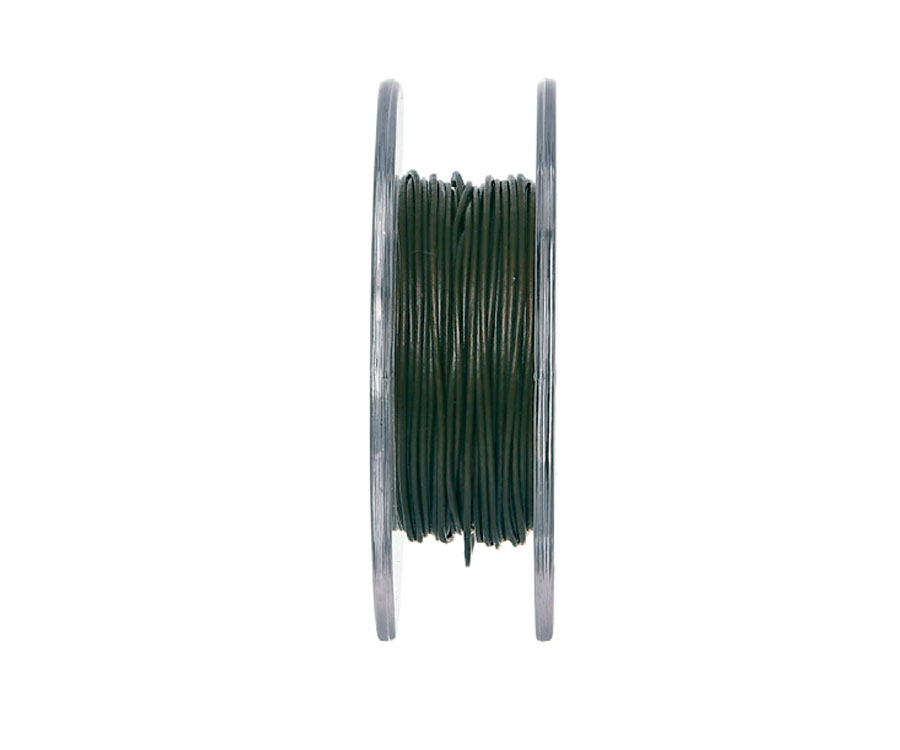 Поводковый материал в оболочке. Быстротонущий, расцветка маскирует его на фоне дна. Поставляется на исключительно удобной для использования бобине, которая не дает ему самопроизвольно разматываться.