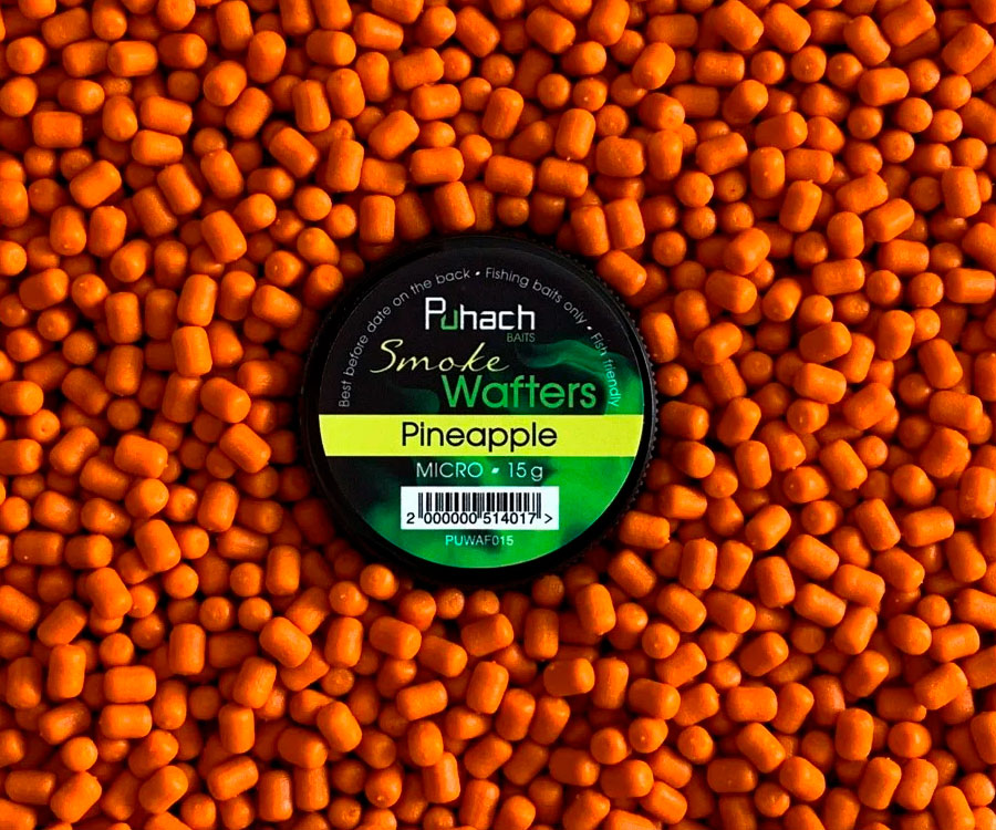 Линейка Wafters Smoke от торговой марки Puhach Baits – это насадка с минимальной плавучестью. Wafters Smoke при попадании в воду создает дымообразное флюоресцентное облако, привлекающее рыбу с дальних расстояний. Обладает хорошей упругостью и стойкостью к нажатию. Wafters не разваливаются при насадке с помощью толстой иглы. Выпускается в двух размерах: MICRO (3.5x6 мм) и MINI (5х8 мм). Продукция разработана Алексеем Пугачем с учетом опыта, полученного на украинских и международных соревнованиях. Насадка подходит для флет фидерной и карповой ловли.