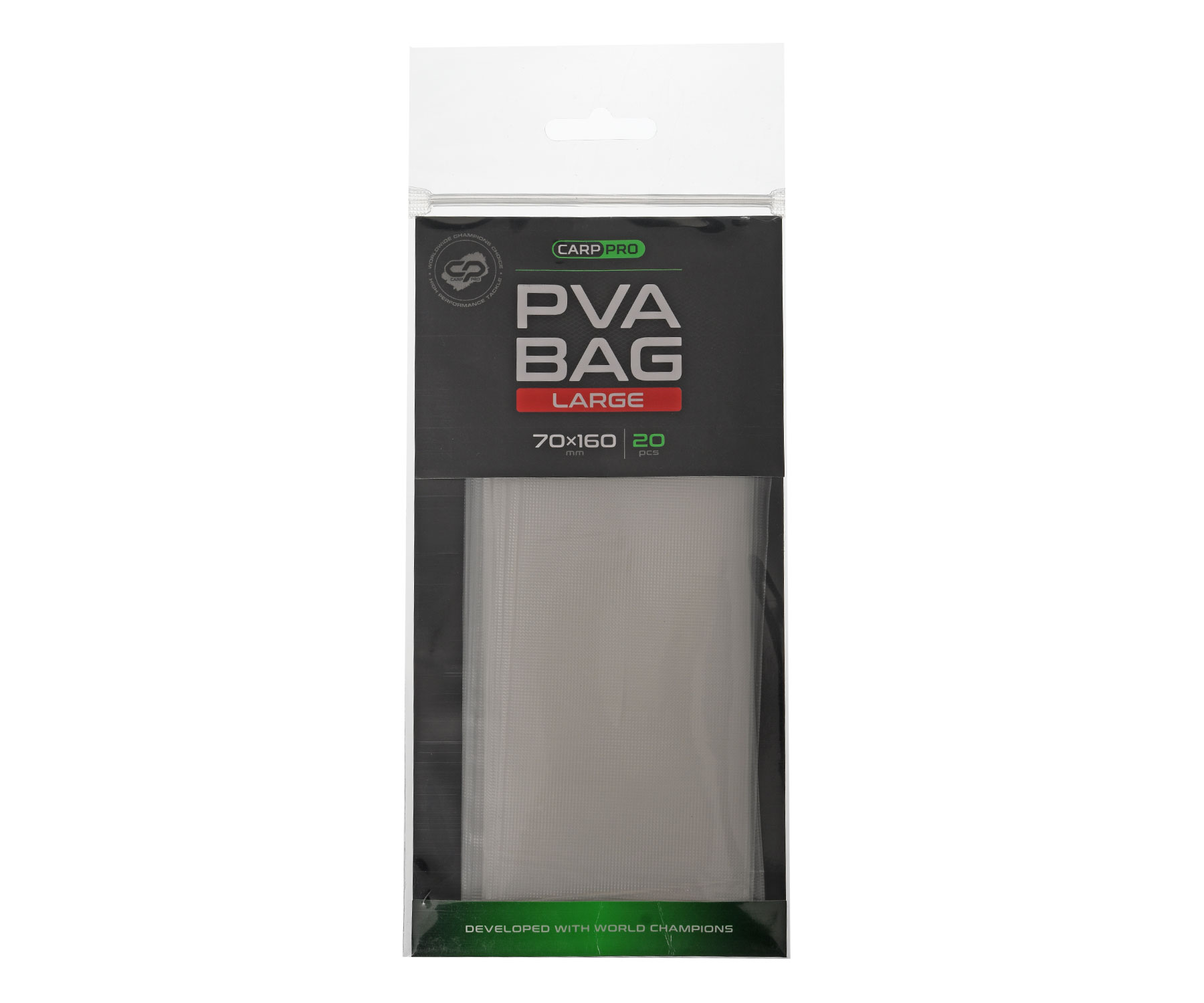 Carp Pro Pva Bag – прочные и эффективные ПВА-мешки, предназначенные для загрузки в них оснасток и прикормок. Мешки Carp Pro Pva Bag изготовлены из высококачественной ПВА-пленки, которая имеет чрезвычайную прочность, нейтральный рН, не имеет запаха, быстро растворяется в воде и биологически разлагается. ПВА-мешки Carp Pro Pva Bag доступны в двух размерах: Small и Large. Подходят для использования с загрузчиками Carp Pro Small Loader и Large Loader, соответственно. Также мешки Carp Pro Pva Bag совместимы с двумя ПВА-системами: мешки Small подойдут для CPPBS614 PVA Bag System Small, мешки Large – для CPPBS716 PVA Bag System Large.