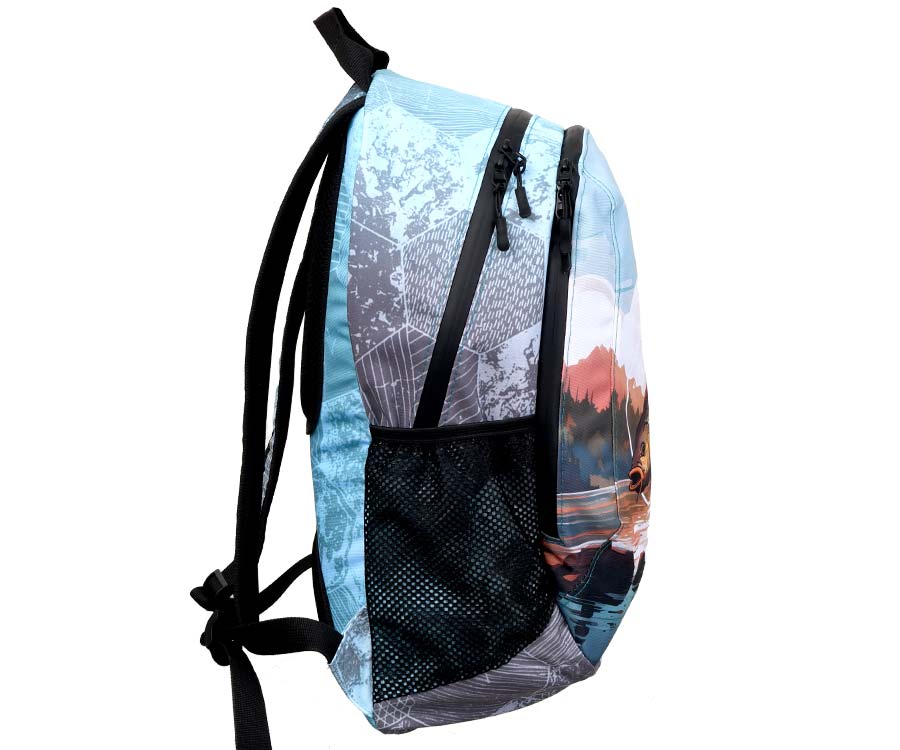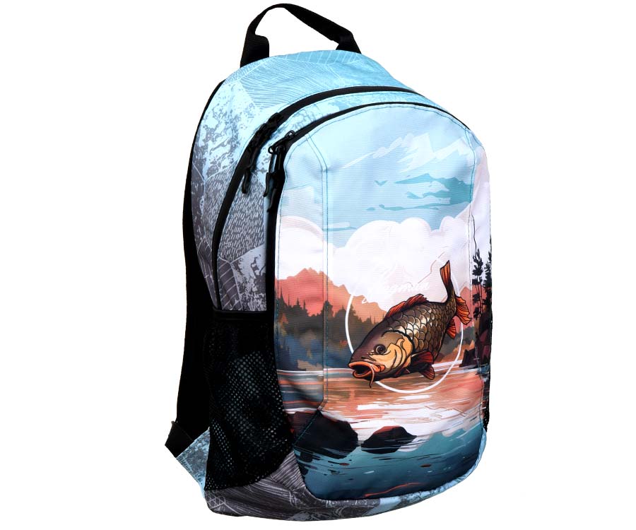 Рюкзак Flagman – лёгкий многофункциональный рюкзак, который изготовлен из прочного износоустойчивого материала Оксфорд 300D с водоотталкивающими свойствами. Изделие имеет два отделения с вместительными внутренними карманами, оснащено надёжными двусторонними молниями и качественной фурнитурой. Рюкзак Flagman удобно садится на спину благодаря мягким регулируемым лямкам и полужёстким вставкам на спинке модели, которые также способствуют улучшенной циркуляции воздуха в жаркую погоду и во время интенсивного передвижения. Наплечный рюкзак от Flagman оформлен красочным изображением рыбы – окуня, карпа, плотвы и т.п. – в её естественной среде обитания. Он не только подчеркнёт вашу индивидуальность, но и станет полезным атрибутом как на рыбалке, так и в повседневной жизни.