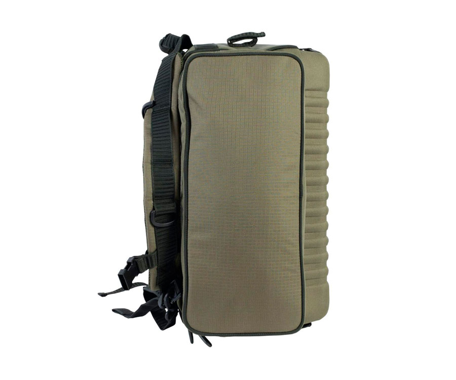 Korum Ruckbag – это обновленная серия легендарной модели рюкзака для транспортировки и хранения рыболовного снаряжения. Изготавливается из прочного и износостойкого материала, который значительно увеличивает общий срок эксплуатации изделия. Представляет собой традиционный рюкзак, переносимый за спиной при помощи мягких и широких шлеек, а также может использоваться как сумка, которую можно переносить в руках на небольшое расстояние за предусмотренные ручки. Обладает просторным основным отделением, что позволяет транспортировать большое количество вещей и это без учета боковых карманов. Как и в предыдущей модели рюкзак оснащен уникальными крючками для крепления и переноски кресла, а также включает в себя новые дополнительные функции. В верхней части сумки есть две петли на липучке для размещения таких вещей, как складные подсаки или стойки.