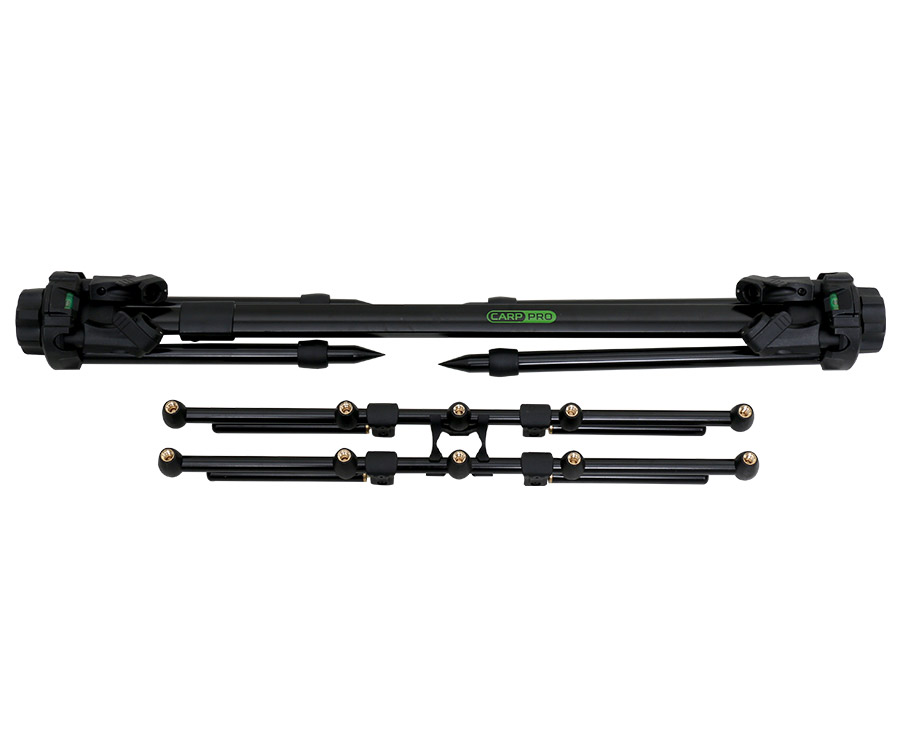 Ключевые преимущества род-пода Carp Pro CP24017 – компактные размеры в сложенном состоянии, а также возможность хранения и транспортировки в тубусе. Жесткий тубус, идущий в комплекте, покрыт износоустойчивой синтетической тканью, сверху закрывается на молнию. Конструкция Carp Pro CP24017 позволяет установить и сложить род-под в считанные секунды. Род-под оснащен двумя пузырьковыми уровнями. Раздвижная станина и телескопические ноги позволяют адаптировать этот род-под Carp Pro к любым условиям. Станина и ноги выполнены из алюминия, резьбовые соединения – из латуни, которая не окисляется в процессе эксплуатации.