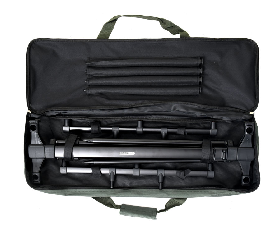 Carp Pro CP55125 – легкий и устойчивый род-под на три удилища. Каркас с раздвижной станиной выполнен из алюминия. Ноги также раздвижные, легко регулируются по высоте. Их длина устанавливается с помощью фиксаторов. В комплекте Carp Pro CP55125 предусмотрен удобный чехол для транспортировки. Чехол выполнен из прочной синтетической ткани, с отдельными карманами для укладки ног. Бузбары с прикрученными ногами позволяют установить их на мягком грунте без использования станины.