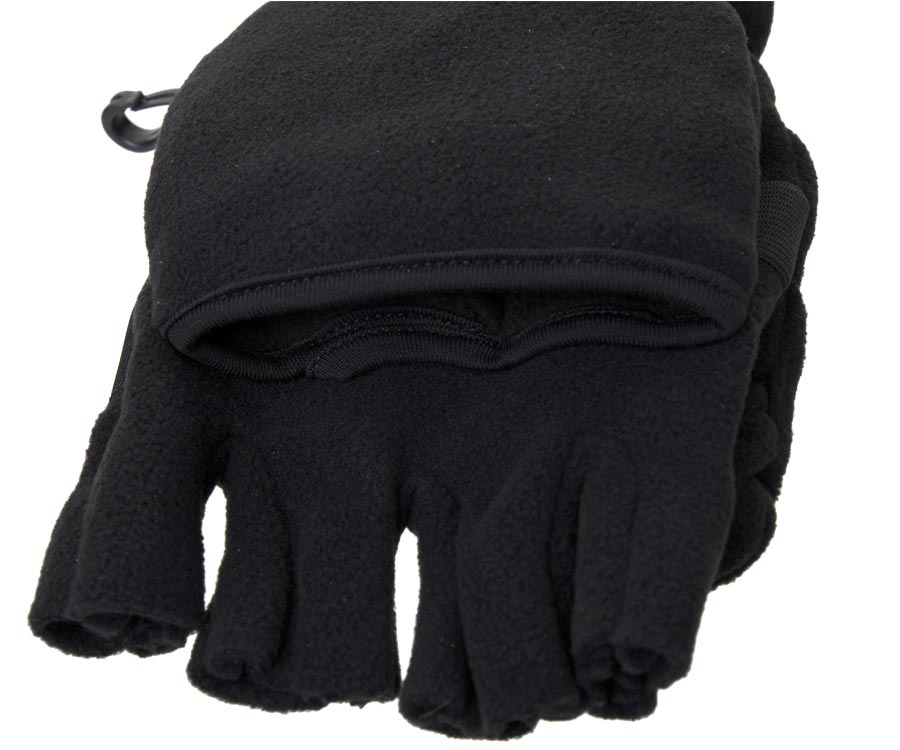 Flagman Black FGL004B – уникальные рыболовные перчатки, которые можно трансформировать, в зависимости от потребностей владельца в данный момент. Изготовленные по технологии Termo Max Microclimate control, они имеют двухслойную конструкцию: наружный слой из флиса в сочетании с подкладкой из утеплителя Thinsulate (от известнейшего химического концерна 3М), который обеспечивает отвод влаги и сохранение тепла. Кончики пальцев (кроме большого) остаются открытыми, кончик большого пальца можно открыть или закрыть – для этого предусмотрена специальная прорезь. Чтобы защитить от холода остальные пальцы, когда не требуется выполнять сложные манипуляции с оснасткой, перчатки снабжены откидной частью, превращающей их в рукавицы. Эта часть легко и быстро откидывается и в таком положении фиксируется резинкой и липучкой. Благодаря своей конструкции, эта часть может определенным образом выворачиваться. В одном из положений сверху оказывается водоотталкивающая ткань, что позволяет брать в руки мокрые предметы, не замочив перчаток. В стандартном положении сверху находится флис. Перчатки флисовые Flagman снабжены трикотажными манжетами, которые способствуют сохранению тепла и предотвращают попадание внутрь снега. С внутренней стороны, на ладонях, перчатки обшиты нескользящим износоустойчивым материалом. Перчатки Flagman FGL004B отлично подойдут для ловли в холодную зимнюю погоду. Цвет: черный.