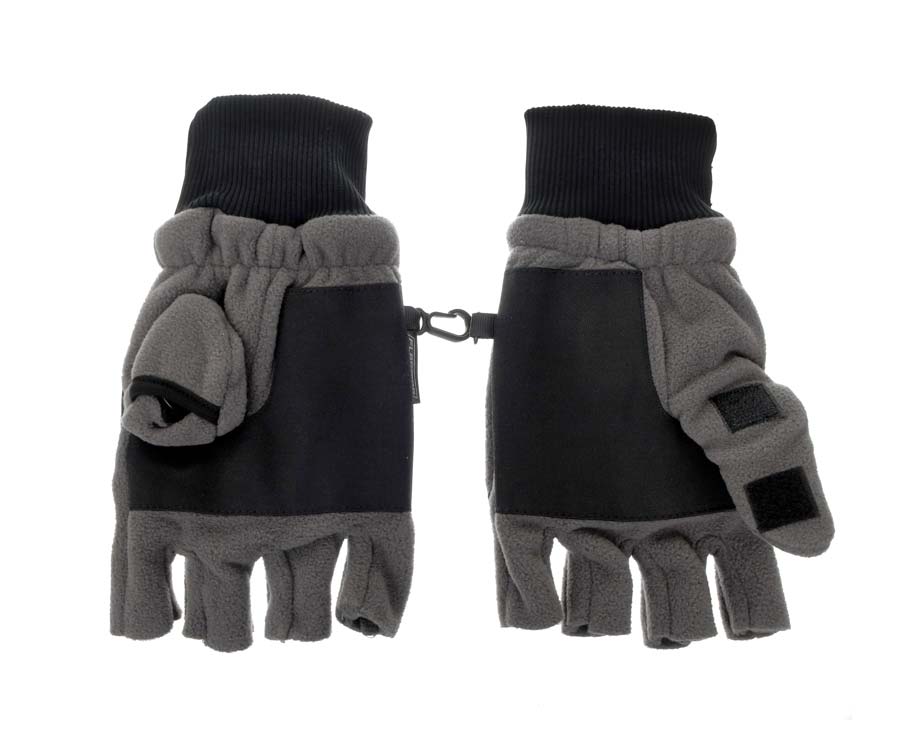 Flagman Gray FGL004G – уникальные рыболовные перчатки, которые можно трансформировать, в зависимости от потребностей владельца в данный момент. Изготовленные по технологии Termo Max Microclimate control, они имеют двухслойную конструкцию: наружный слой из флиса в сочетании с подкладкой из утеплителя Thinsulate (от известнейшего химического концерна 3М), который обеспечивает отвод влаги и сохранение тепла. Кончики пальцев (кроме большого) остаются открытыми, кончик большого пальца можно открыть или закрыть – для этого предусмотрена специальная прорезь. Чтобы защитить от холода остальные пальцы, когда не требуется выполнять сложные манипуляции с оснасткой, перчатки снабжены откидной частью, превращающей их в рукавицы. Эта часть легко и быстро откидывается и в таком положении фиксируется резинкой и липучкой. Благодаря своей конструкции, эта часть может определенным образом выворачиваться. В одном из положений сверху оказывается водоотталкивающая ткань, что позволяет брать в руки мокрые предметы, не замочив перчаток. В стандартном положении сверху находится флис. Перчатки флисовые Flagman снабжены трикотажными манжетами, которые способствуют сохранению тепла и предотвращают попадание внутрь снега. С внутренней стороны, на ладонях, перчатки обшиты нескользящим износоустойчивым материалом. Перчатки Flagman FGL004G отлично подойдут для ловли в холодную зимнюю погоду. Цвет: серый.