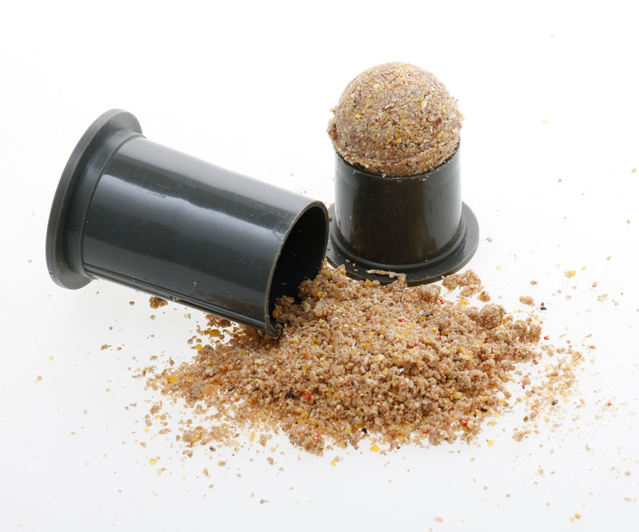 40мм - маловато. где-то 40грамм прикормки. Помещается в спомб-мини.