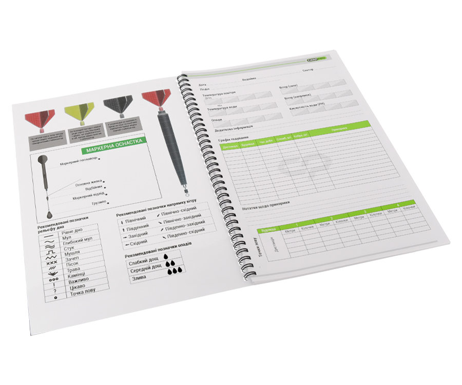 Дневник карпятника Carp Pro – полевой блокнот рыболова-карпятника. Создан специально для рыболовов, которые привыкли систематизировать данные и проводить всесторонний анализ каждой рыболовной сессии. Разработан чемпионом мира, неоднократными победителем национальных и международных турниов по карпфишингу Игорем Пацерой. Дневник включает в себя не только заполняемые рыболовом поля со статистическими данными о водоёме, маркировании дна, погодных условиях, графике кормления рыбы, составе прикормки, насадках, периодичности поклёвок рыбы и т.п., но и множество справочных данных, призванных облегчить как подготовку к ловле, так и саму рыбалку. Дневник карпятника Carp Pro выполнен в удобном и компактном формате А4 и рассчитан на 15 рыболовных сессий. Он легко помещается в рыболовную сумку, рюкзак или в коробку для рыболовных принадлежностей.