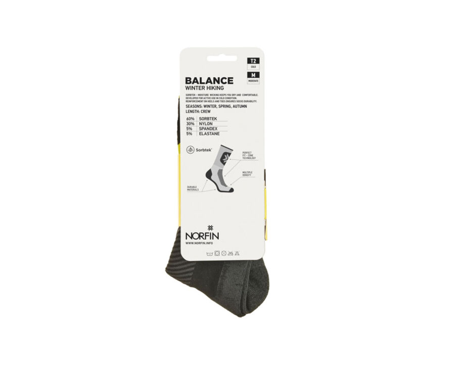 Термоноски T2M Balance Winter Hiking Crew – носки для ежедневного использования в условиях прохладной погоды до 0°С и средней активности. Комбинация акрила, полиэстера и эластана в составе не дает теплому воздуху выходить на наружу, а образует тёплую прослойку между ногой и носком, не пропуская холодный воздух внутрь. Особая структура волокна быстро впитывает и выводит влагу наружу, оставляя ноги сухими и теплыми. Мягкость и высокая износостойкость делают эти носки идеальными для комфортного и длительного использования.