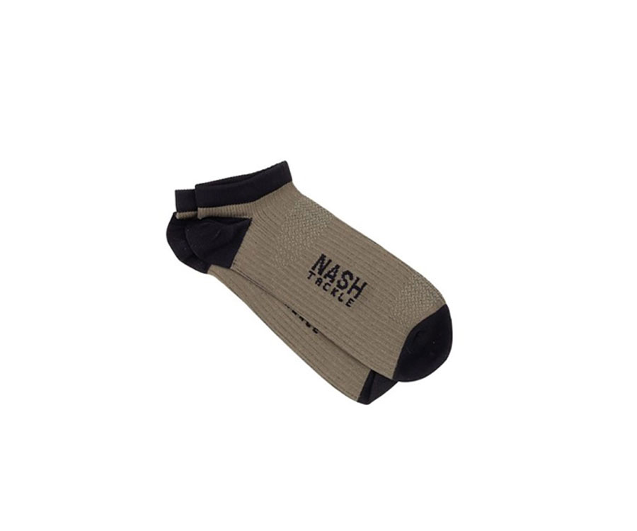 Короткие носки по щиколотки сохраняют прохладу ног и гигиеничность обуви при высоких температурах. Две пары в упаковке, с противоположными зелеными и черными рисунками. Трикотаж из 100% хлопка.
