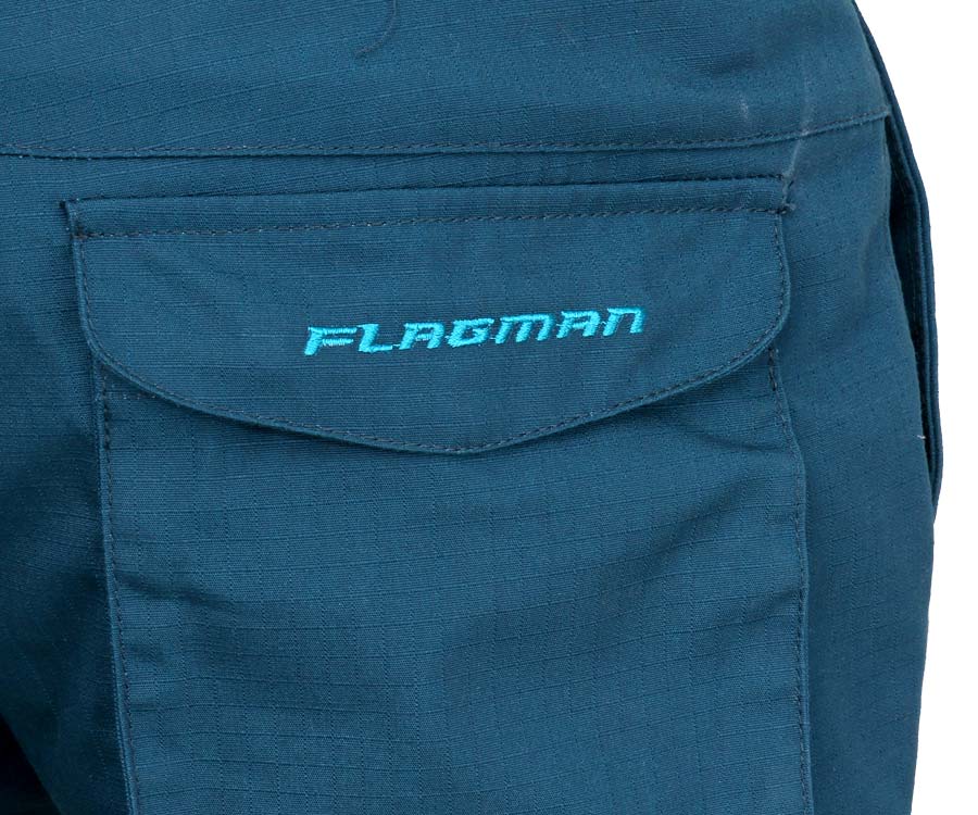 Износостойкие брюки из 50% хлопка и 50% полиэстера в стиле карго от Flagman. Современная ткань Rip Stop обеспечивает прекрасную ветро- и брызгозащиту, брюки легко стираются и быстро сохнут. Удобный покрой идеально подходит для активных видов отдыха, в том числе для занятий туризмом, охотой и рыбалкой. Пояс брюк по бокам имеет вставки на резинках. Внизу брючин предусмотрены утяжки на шнурках. Удобный анатомический крой колен. Два глубоких боковых кармана, два накладных карго кармана на бедрах (застегиваются на кнопки), и два задних кармана на кнопках. Надежная фурнитура, фирменный логотип на одном из карманов.