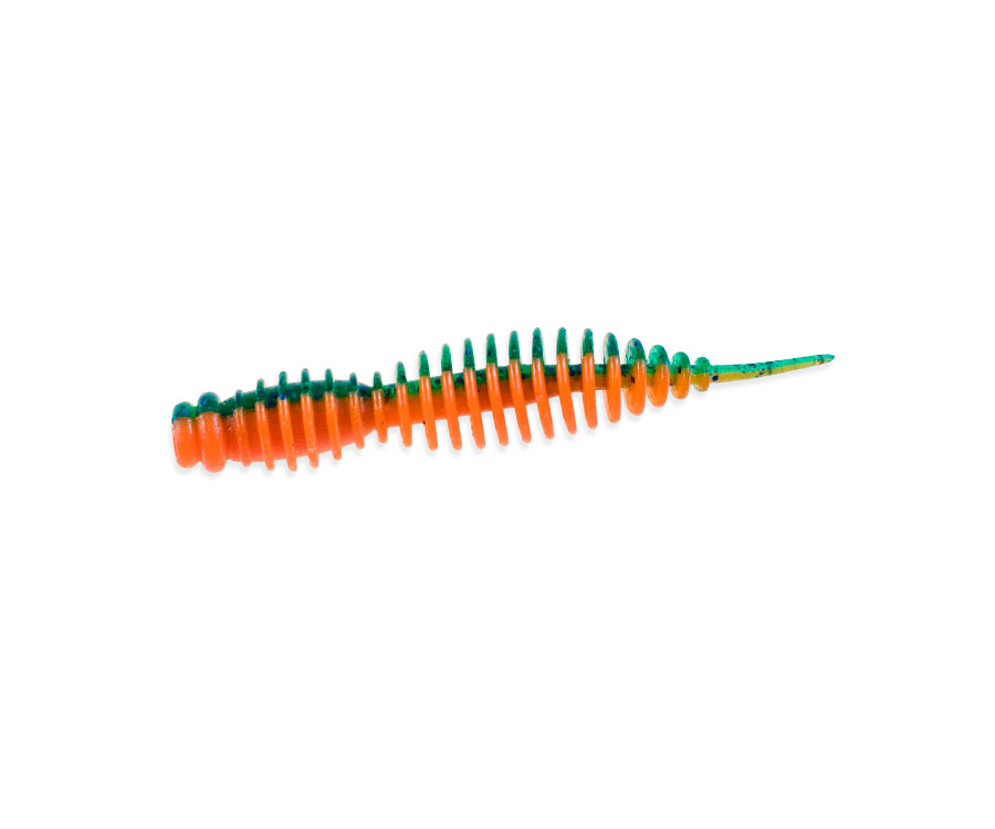 Слаг Angry Baits Killer Lip 3" – уникальный «аэро-слаг» для ловли окуня и судака. Приманка имитирует объемную личинку стрекозы, для чего стоит лишь посмотреть на головную часть слага. Однако форма приманки не идеально повторяет оригинал и ему подобные модели. Angry Baits Killer Lip лишен лапок, которые бы парусили при забросе и ухудшали полетные характеристики приманки. Хвостовая же часть очень похожа на силиконовую приманку FishUр Tanta, которая и без лапок невероятно уловиста и актуальна в большинстве случаев и практически в любых условиях. Потому, когда рыба крайне пассивна и необходимо увеличить реализацию осторожных поклевок, можно просто оторвать голову Angry Baits Killer Lip и получить более короткую тантоподобную приманку.