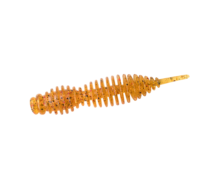 Широкие ребра при тонком теле делают Air Worm очень подвижным в воде. На разных стилях анимации приманка смотрится очень живо и аппетитно для рыбы. Даже на коротких рывках в придонной зоне слаг извивается всем телом и имеет колебания тонкого хвостика. А на равномерной проводке все тело идет змейкой и очень заметно трясет хвостом. Это можно видеть, когда мы делаем оборот катушкой и разгоняем приманку в классической проводке "два оборота-стоп". Такая тряска приманки дополнительно провоцирует рыбу на атаку.