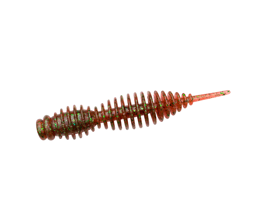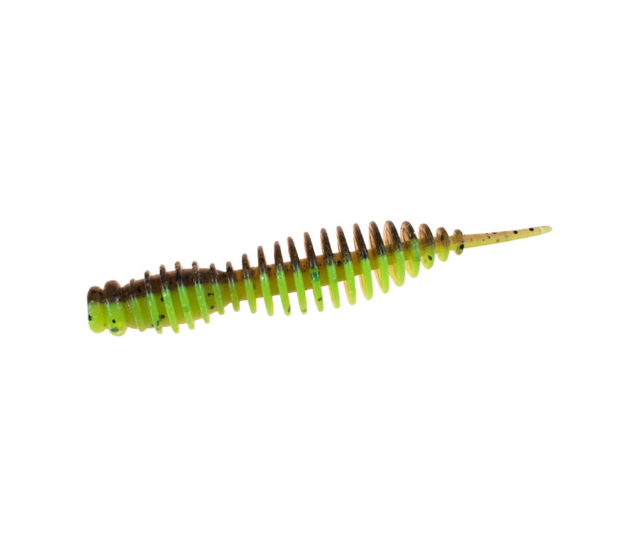 Широкие ребра при тонком теле делают Air Worm очень подвижным в воде. На разных стилях анимации приманка смотрится очень живо и аппетитно для рыбы. Даже на коротких рывках в придонной зоне слаг извивается всем телом и имеет колебания тонкого хвостика. А на равномерной проводке все тело идет змейкой и очень заметно трясет хвостом. Это можно видеть, когда мы делаем оборот катушкой и разгоняем приманку в классической проводке "два оборота-стоп". Такая тряска приманки дополнительно провоцирует рыбу на атаку.