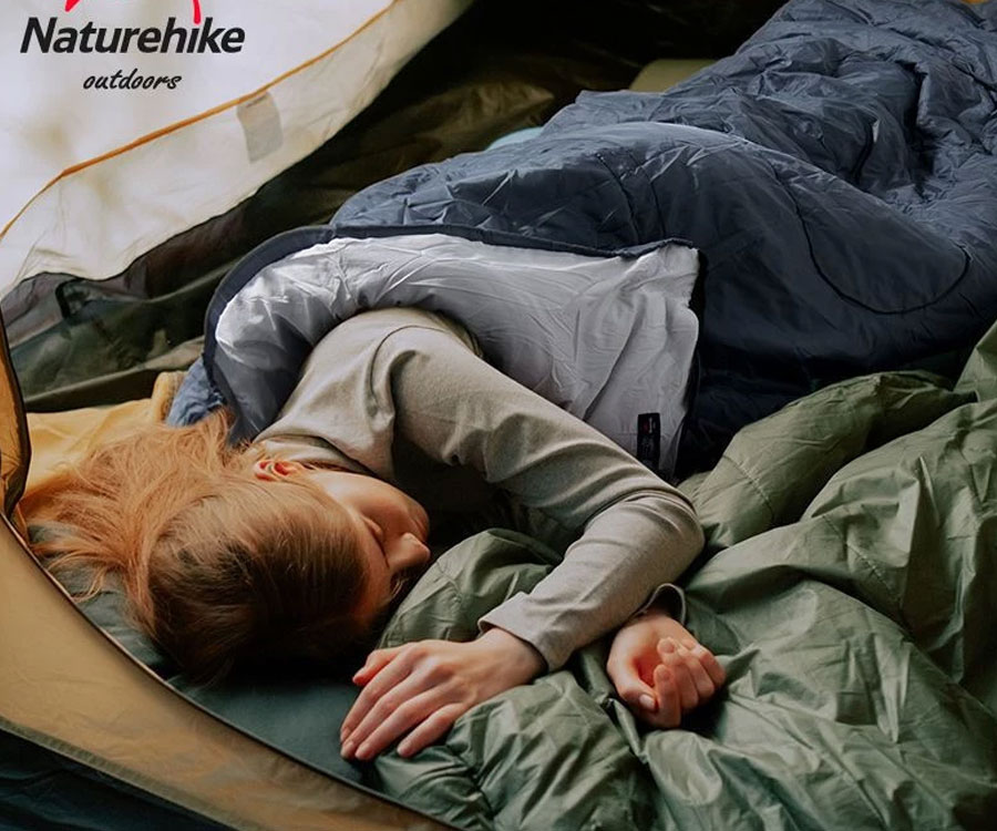 Спальный мешок от Naturehike имеет форму кокона, за счет чего обеспечивается полноценный отдых в удобной позе. Внутренний материал – приятный на ощупь хлопок высокого качества, который не вызывает аллергическую реакцию. Внешний материал – полиэстер, обладающий водоотталкивающими свойствами. Эта ткань сохраняет тепло, отличается устойчивостью к разрывам и водоотталкивающими свойствами. Модель с капюшоном, которую можно использовать во время отдыха на природе. Оптимальный температурный режим составляет 11 градусов по Цельсию. Это правый спальный мешок, который можно легко соединить с таким же левым. В результате у вас получится вместительный двухместный спальник. В этом случае обозначение «правый» означает, что застежка расположена справа для человека, лежащего в спальнике на спине. Минимальная температура для безопасного отдыха составляет 7 градусов тепла по Цельсию. Из особенностей спальника можно выделить то, что он обладает прекрасной воздухопроницаемостью, не позволяет замерзнуть во время сна. Также предусмотрен капюшон для дополнительной защиты головы от ветра. При необходимости спальник можно расстегнуть снизу, чтобы улучшить вентиляцию ног.