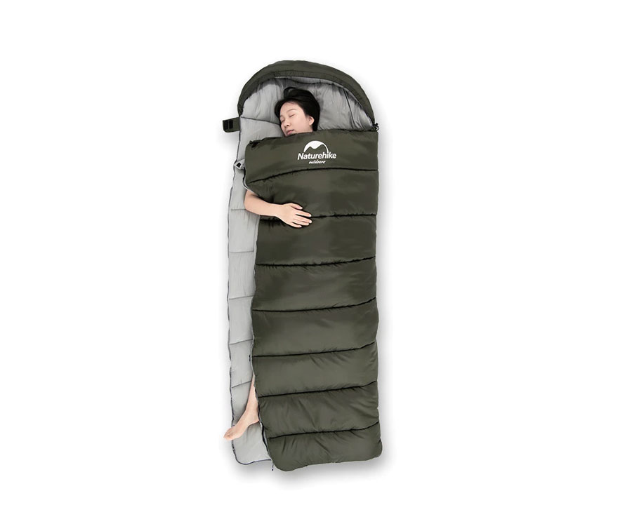Спальный мешок с худи Hollow Cotton от Naturehike с моделью-конвертом, чтобы его можно было широко раскрыть в одеяло. Этот вид также можно комбинировать в двухместную модель. Цвета модели: коричневый, зеленый. Спальник обеспечивает пользователю комфорт, уют и тепло в полевых условиях. Спальный мешок надежный и удобный в применении. Застегивается на змейку. Размеры изделия: 220 х 75 сантиметров, внутри него свободно помещается взрослый человек даже высокого роста. Размер в разложенном виде: (190 + 30) x 75 см. Упаковывается такой спальник в специальный мешок для хранения и переноски. Теплый и гигиеничный спальный мешок эффективно согревает, приятен для тела, защищает от влаги, сырости, холода и ветра. Оптимально для использования во время пребывания на природе. Ваш сон будет спокойным и здоровым в течение всей ночи. Спальный мешок имеет продуманный крой и форму, чтобы обеспечить идеальное расположение внутри и качественный отдых.