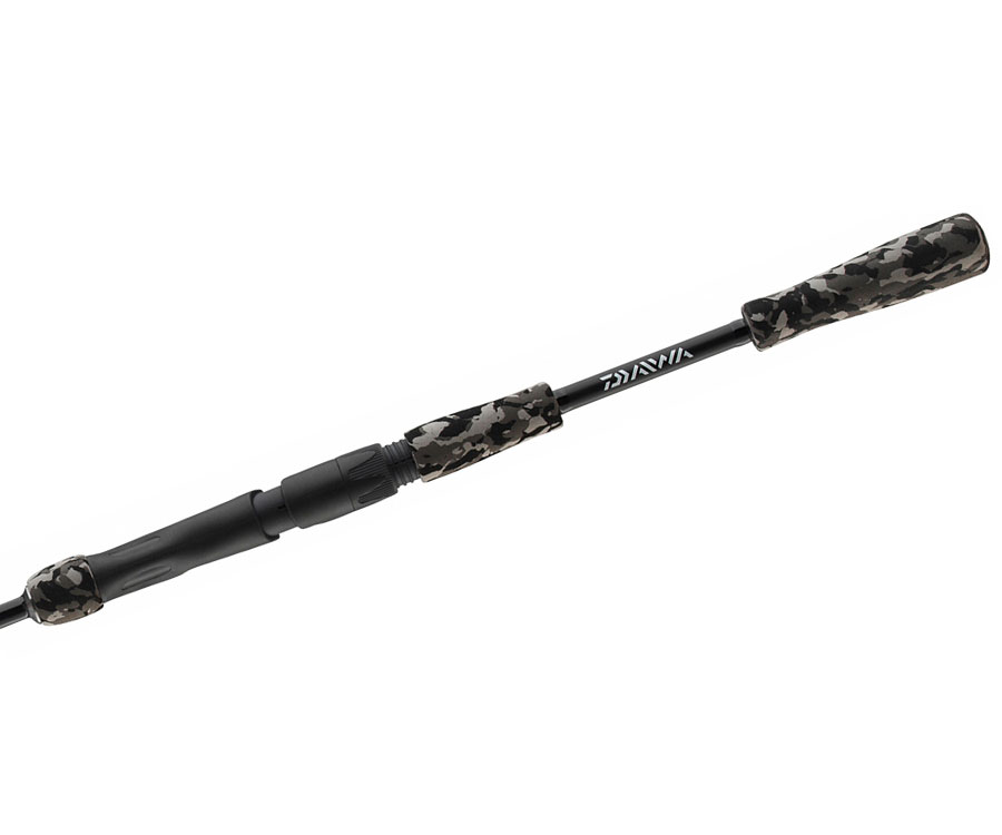 Спиннинги Daiwa Fuego Spin Camo – это широкий модельный ряд современных удилищ с быстрыми бланками, которые в зависимости от модели охватывают практически все виды современной спиннинговой ловли на искусственные приманки. Имея быстрый строй удилища Daiwa Fuego Camo особенно хорошо подходят для джиговой ловли на мягкие пластиковые приманками. Использование в конструкции бланка эксклюзивного углеволокна HVF, разработанного Daiwa, позволяет создавать очень быстрые и лёгкие удилища, которые обеспечивают прекрасное управление приманкой и обладают высокой прочностью. Эти удилища имеют современный вид благодаря модному серому цвету и оснащены оригинальным катушкодержателем Seaguide и рукояткой из EVA премиум-класса в камуфляжной расцветке. Держатель катушки Seaguide Alien обеспечивает мгновенный тактильный контакт руки рыболова с бланком удилища благодаря боковым контактным площадкам, оптимизируя процесс подачи приманки и регистрации поклёвки. Его эргономичная форма гарантирует комфорт ловли и позволяет получать максимальное удовольствие от рыбалки. Бланки удилищ Daiwa Fuego Spin идеально сбалансированы и оснащены лёгкими пропускными кольцами со вставками из оксида титана.