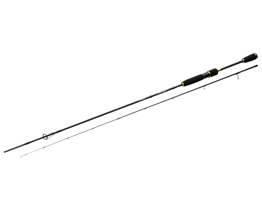 Серия спиннинговых удилищ, включающая в себя широкий спектр моделей для ловли в самых разнообразных условиях. Бланки различны по строю, при этом даже у самых быстрых из них под нагрузкой в работу включается большая часть, обеспечивая прекрасные кастинговые характеристики и амортизацию рывков рыбы. В то же время они обладают упругостью и жесткостью, достаточными для выполнения сложных неравномерных проводок. Удилища оснащены облегченными пропускными кольцами. Диаметры вставок и высота опор подобраны таким образом, что леска, сходя со шпули катушки, образует короткий конус, а затем идет вдоль бланка по прямой. Данная концепция подразумевает использование на верхнем колене очень легких колец с короткими опорами, что повышает чувствительность, разгружает бланк и способствует увеличению дальности заброса. Удобная разнесенная рукоять из EVA оснащена эргономичным катушкодержателем. Данная модель имеет солидовую вклеенную вершинку и спроектирована с джиговым уклоном, но это никак не мешает использовать ее, как многоцелевое удилище. Оно прекрасно подойдет для самых разных приманок и способов их анимации. А главное – эти снасти обладают просто беспрецедентными характеристиками, как для своей цены.