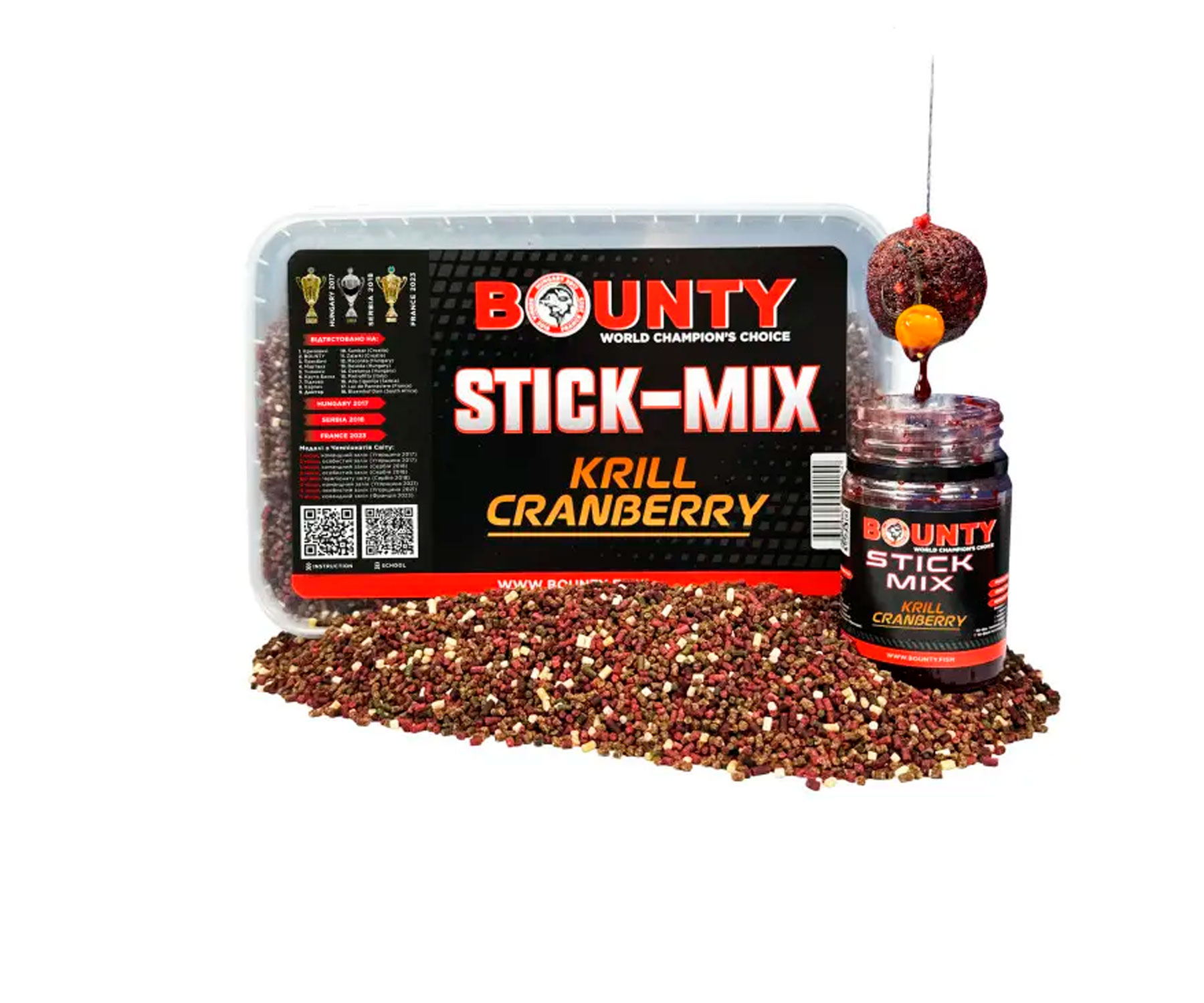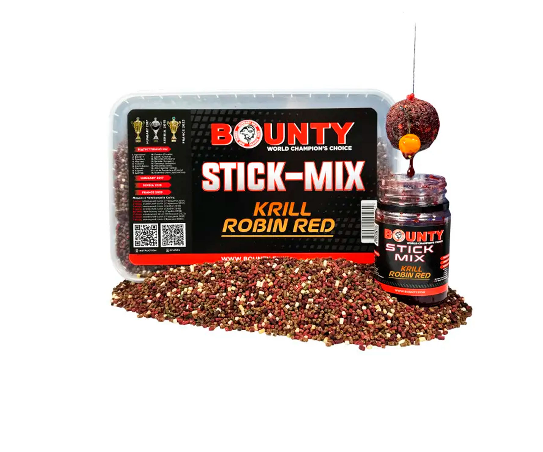 Стик-микс Bounty – нет аналогов в рыболовном мире! В составе Стик-Микса Bounty присутствуют высококачественные компоненты первичной свежести, которые карп просто не сможет проигнорировать, а именно: Сбалансированный микс быстрых свежих пелец, работающих на всех водоемах Специально разработанный спортсменами Bounty ликвид Его состав многократно протестирован в различных условиях ловли многократными чемпионами мира, и всегда приносит результат.