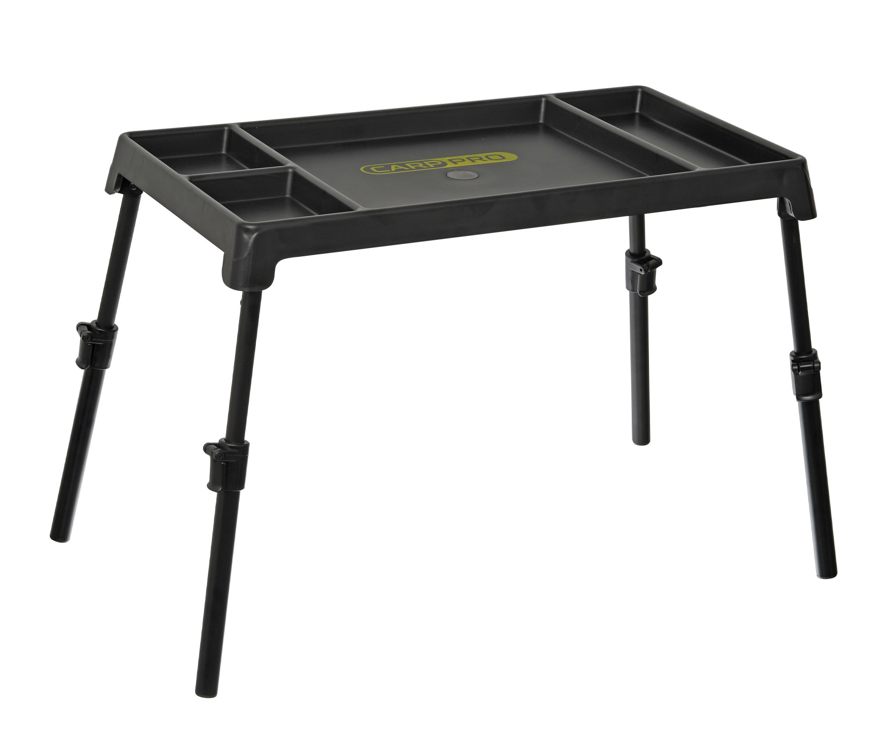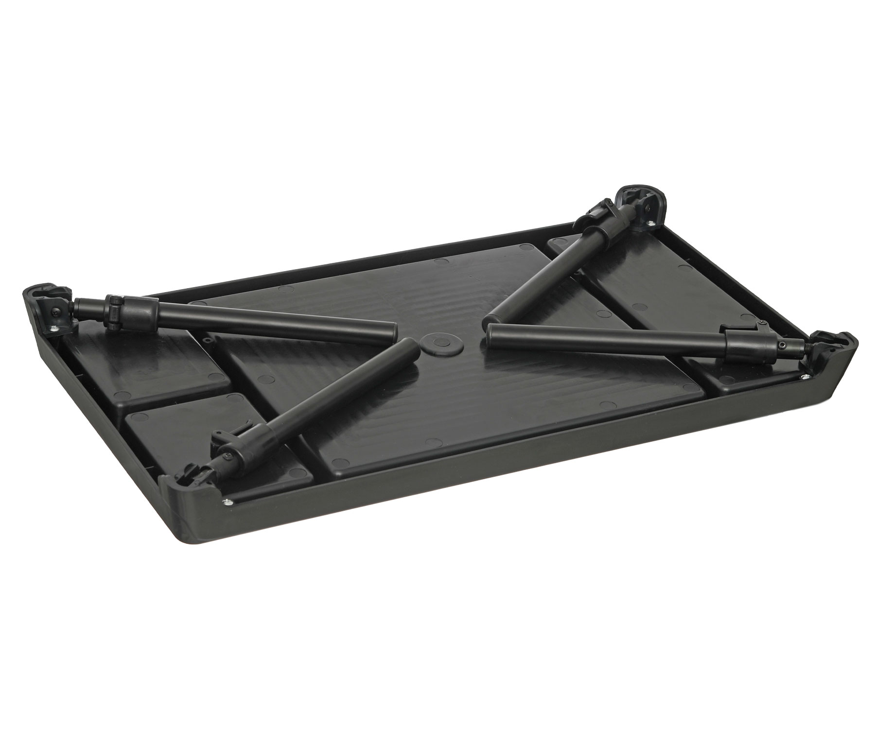 Маленький и легкий пластиковый монтажный столик. Благодаря складной конструкции занимает очень мало места при транспортировке. Телескопические ноги позволяют изменять высоту столика и располагать его на неровном берегу. Буртики, разделяющие его на отделения, не дают предметам скатываться на землю. Размеры, см: 54 Х 30. Максимальная высота ножек, см: 37.