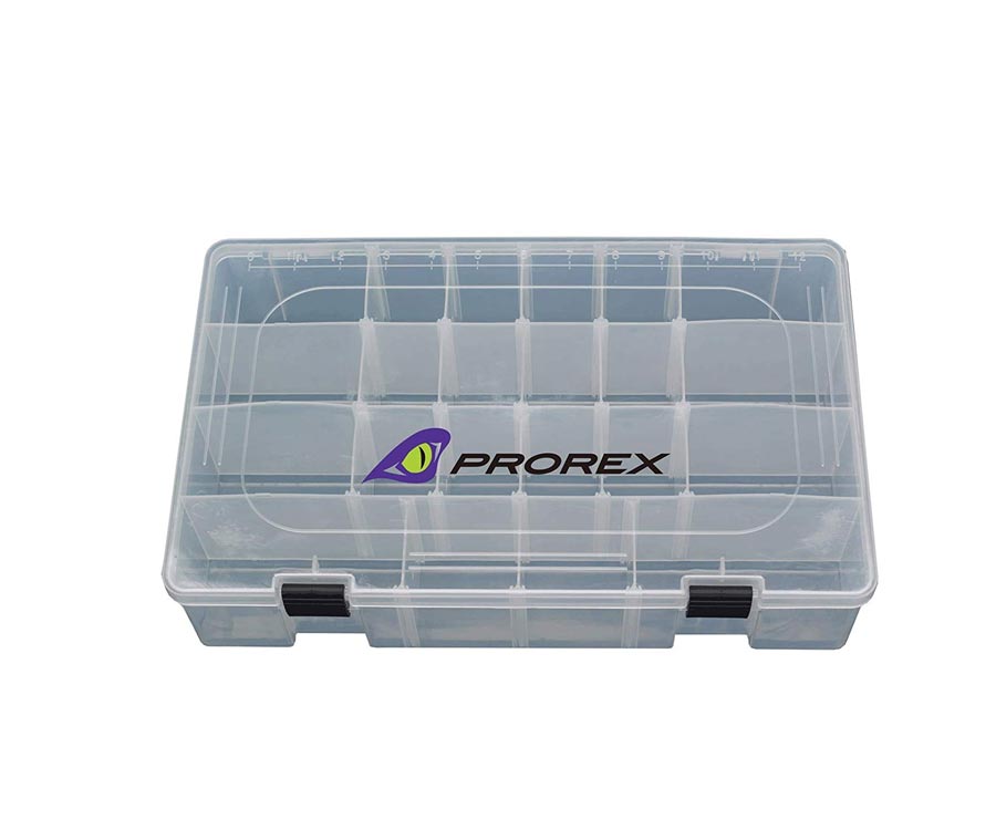 Прорезиненное дно предотвращает проникновение влаги снизу. Материал Prorex Lure BagXXL является водоотталкивающим и выдерживает непродолжительный дождь. Большой отсек над коробками предназначен для хранения больших предметов и может быть разделен на отделения разного размера перегородками на липучке. Мягкий регулируемый плечевой ремень обеспечивает комфорт при переноске, даже если сумка полностью загружена. Prorex LureBag XXL – идеальная сумка для лодочной ловли!
