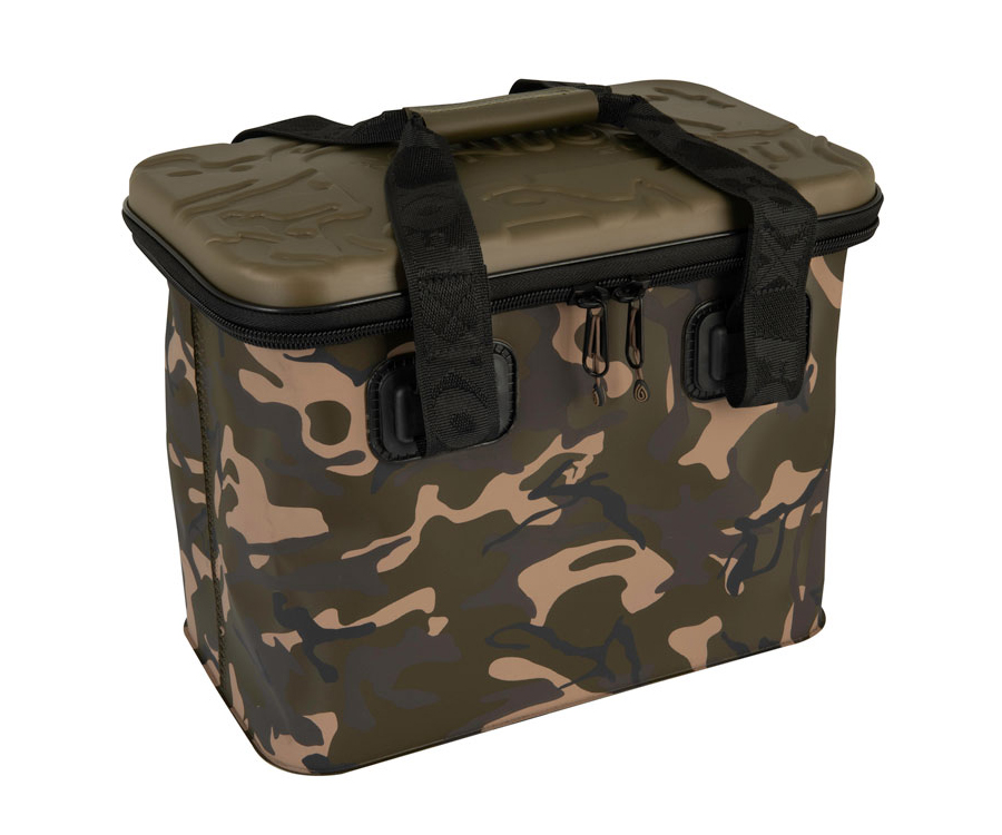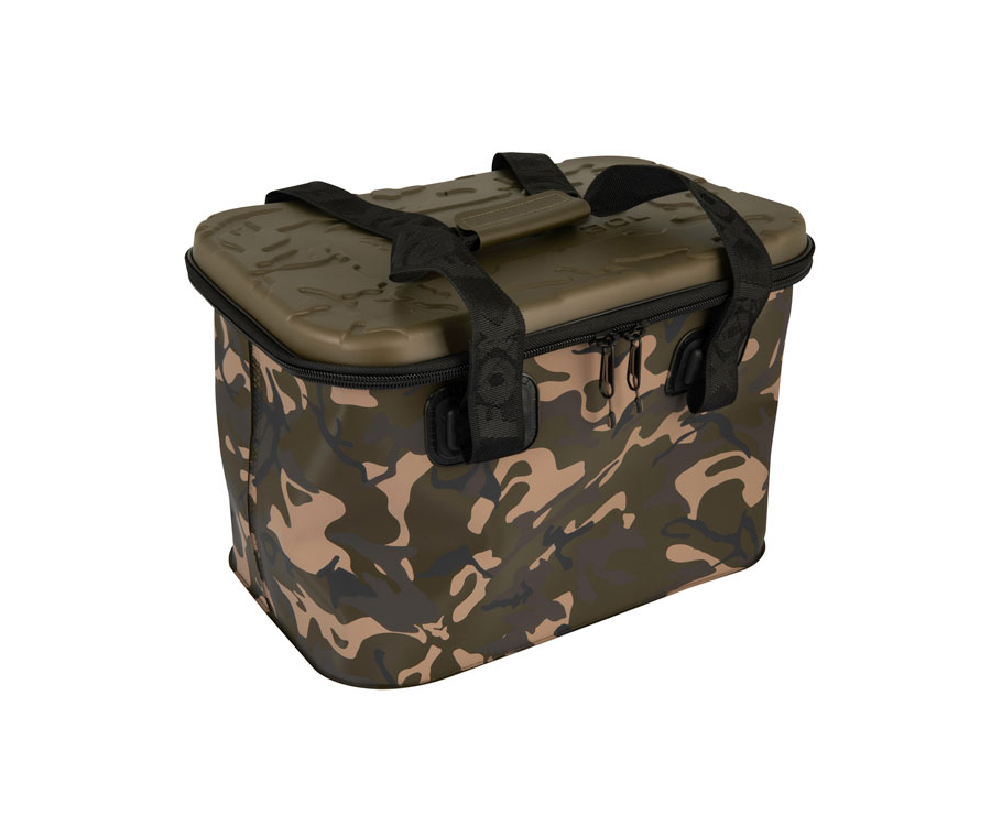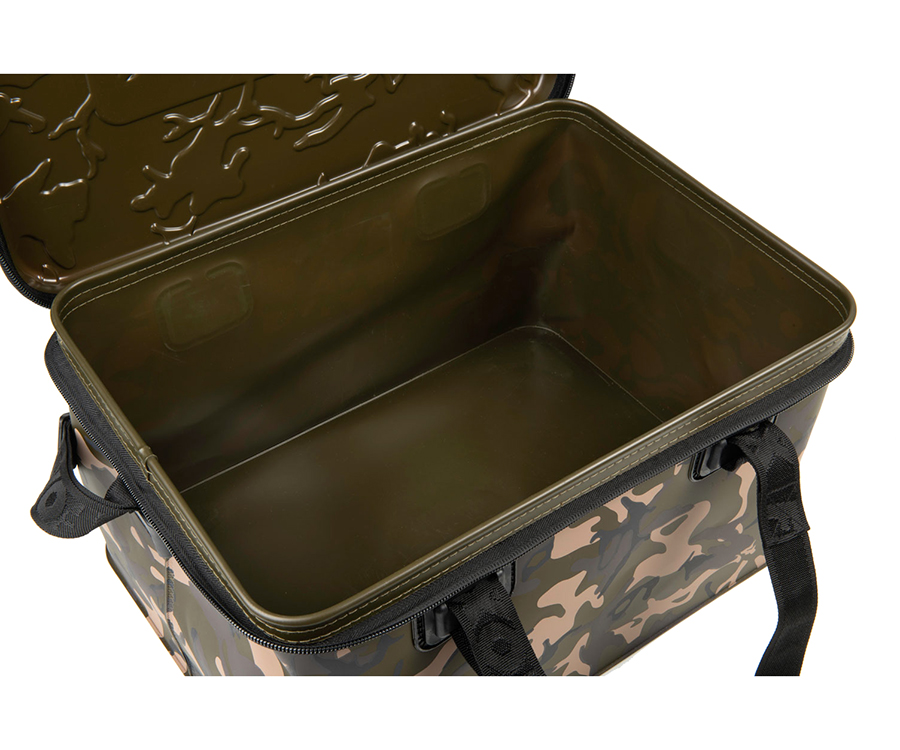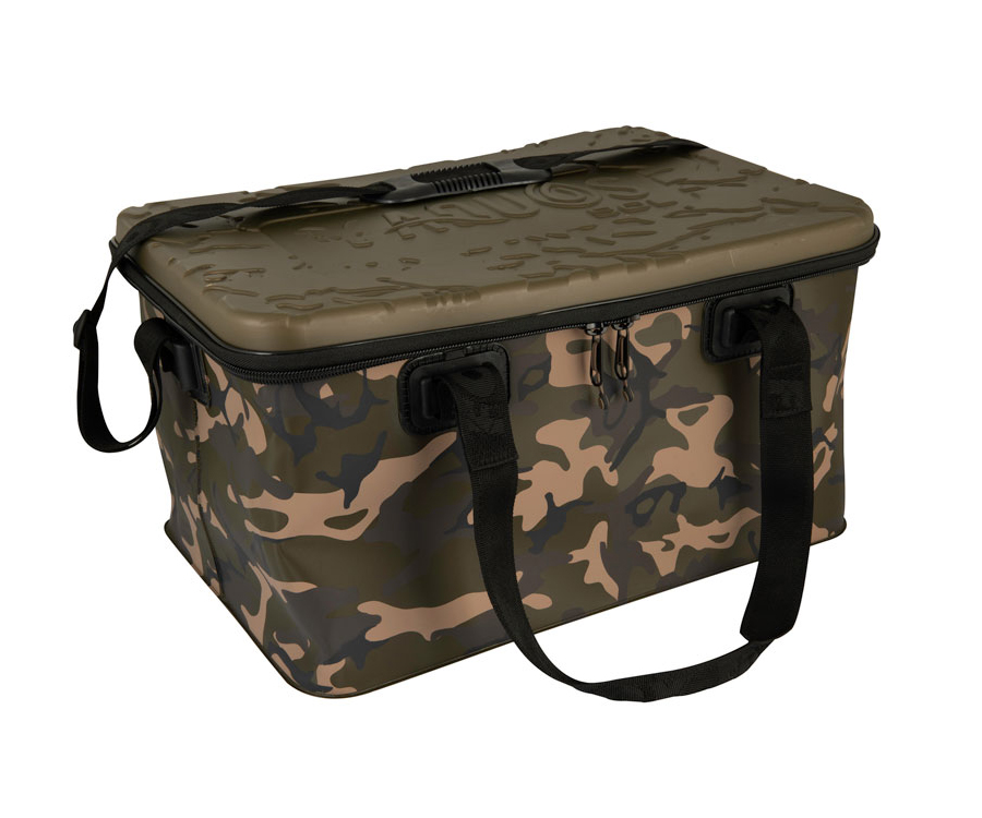Сумка FOX Aquos Camolite - износостойкая, водонепроницаемая сумка из ЭВА. Может использоваться для самых разнообразных задач, например, замешивания прикормки или переноски необходимых вещей, таких как еда, кухонные принадлежности или одежда. Имеет уникальный камуфляжный рисунок Fox Camo, специальные, литые, накладные крышки цвета хаки, износостойкие полиэстеровые ремни для переноски.