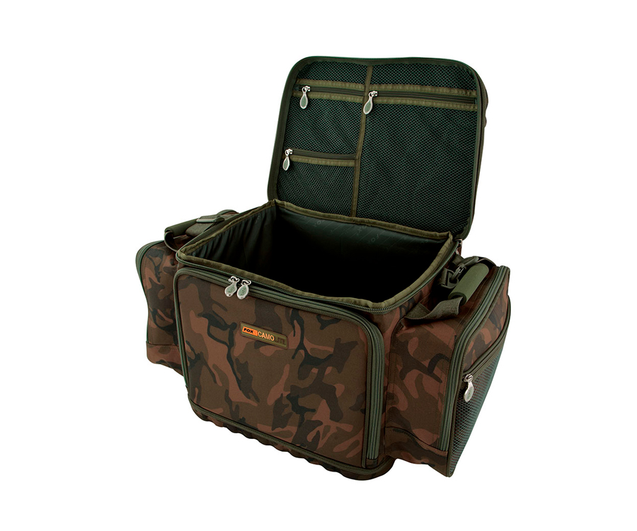 Сумка Fox International Camo Barrow Bag - идеально сочетается с тележкой Explorer, благодаря задней удерживающей панели, предназначенной для крепления сумки. Отлично подходит для хранения снастей, насадок и одежды. Предусмотрены жесткие рукоятки из материала EVA, съемный плечевой ремень, внешние и внутренние сетчатые карманы. Один передний большой карман, в который помещается F-Box, для простоты доступа к коробке со снастями и другим вещам. Сумка оснащена 10 мм прочными двойными замками, изготовлена из 100% полиэстера, который отличается повышенной прочность, надежностью и влагоустойчивостью.