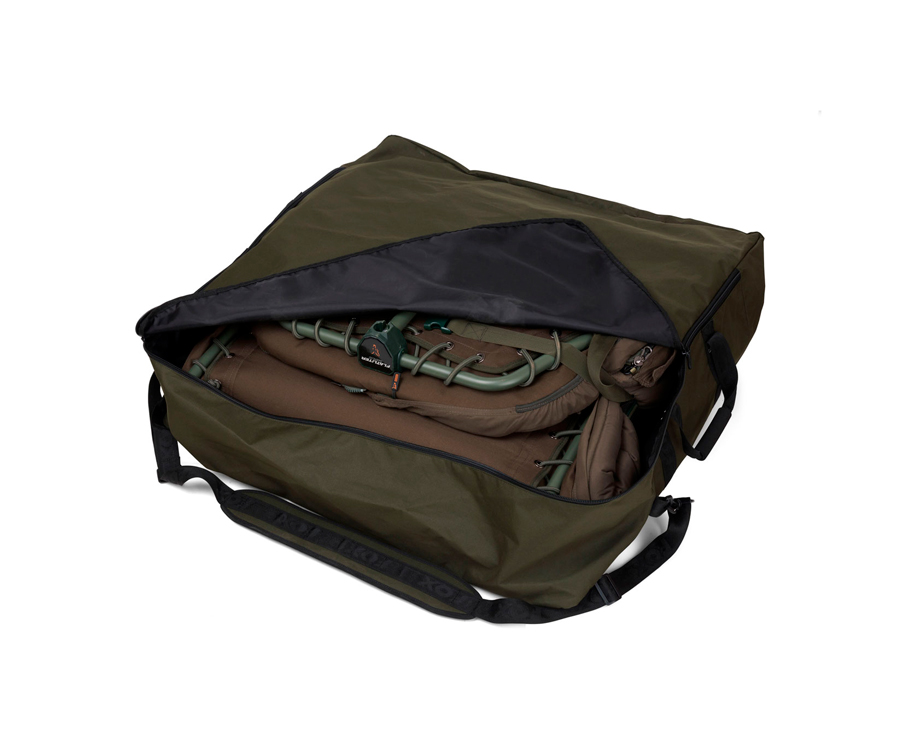 Сумка для кровати Fox R-Series Standart Bedchair Bag совместима с кроватями R1, R2, Warrior 2, Flatliner и Flatliter MK2. Изготовлена из нового износостойкого и водостойкого обработанного полиэстера 400Д. Имеет прочные двойные 10мм молнии, жёсткие ручки из EVA, а также съёмный наплечный ремень. Может вместить лёгкий спальный мешок и подушку.