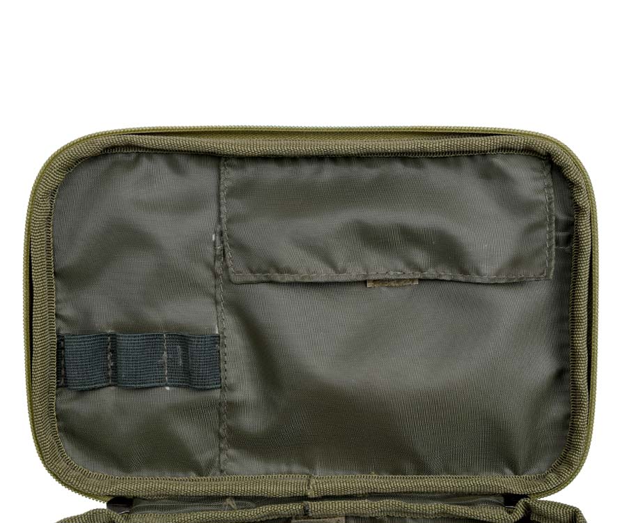 Сarp Pro Diamond CPLD5394 – сумка-органайзер для карповых аксессуаров и терминальных снастей. Выполнена из уникального фирменного влагостойкого камуфлированного материала Сarp Pro (Oxford 650D). Имеет продуманную конструкцию, закрывается на двустороннюю молнию. Основное отделение можно по необходимости разделить и оптимизировать под потребности двумя мягкими перегородками. На внутренней стороне крышки расположен кармашек на липучке и эластичная резинка для хранения аксессуаров. Благодаря вставкам из мягкого пористого материала органайзер Сarp Pro Diamond CPLD5394 обеспечивает прекрасную защиту содержимому. Имеет ручку для переноски. Надежная и долговечная молния оснащена бегунками с удобными в работе прорезиненными пуллерами.