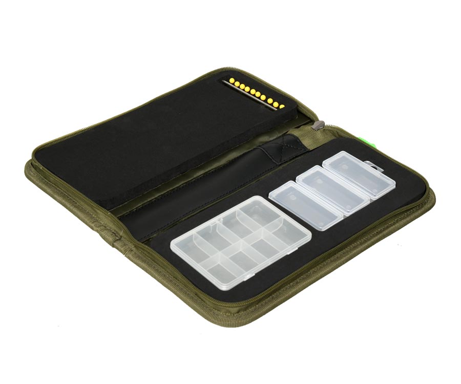 Сarp Pro Rig Holdall CPLD69544 – полужесткая сумка-поводочница для карповых поводков и терминальных снастей. Выполнена из фирменного влагостойкого камуфлированного материала Oxford 650D. Имеет компактную продуманную конструкцию, закрывается на молнию. С одной стороны основного отделения находится поводочница для карповых поводков, выполненная из EVA, с другой – пластиковые коробочки для хранения мелких аксессуаров (крючков, застежек, колечек, вертлюжков и т.п.). Благодаря жестким вставкам сумка-поводочница Carp Pro Rig Holdall обеспечивает прекрасную защиту содержимому.