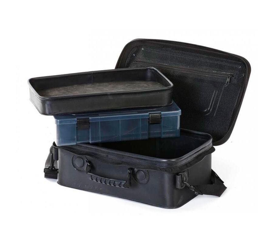 Сумка рыболовная с коробкой и лотком Lucky John EVA Lure Bag – идеальная сумка для спиннинговой ловли из качественного материала EVA. Укомплектована пластиковой коробкой для хранения приманок и оснасток, а также лотком из EVA со вставкой из пенки для «сброса» приманок в процессе ловли. Оборудована надёжной двусторонней молнией, ручкой и наплечным регулируемым ремнём для переноски. Легко моется и не пропускает воду! Размеры: 40x22,5x14 см.