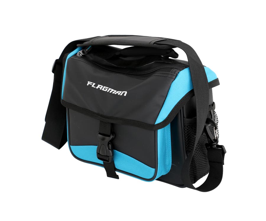 Удобная и вместительная сумка из прочной, прорезиненной ткани с набором коробок. Сумка превосходно защищает рыболовные принадлежности от брызг воды и дождя. Оснащена двумя боковыми сетчатыми карманами и одним фронтальным на молнии. Крышка застегивается на защелку типа Fastex. Для транспортировки сумки используется наплечный ремень с эргономичной вставкой и ручкой с мягкой накладкой из неопрена. В комплект входят две коробки из прозрачного пластика с ячейками для мелких рыболовных аксессуаров и принадлежностей. Размеры коробок — 27×18×4 см и 20×14×4 см. Вес сумки с набором коробок — 1 кг.