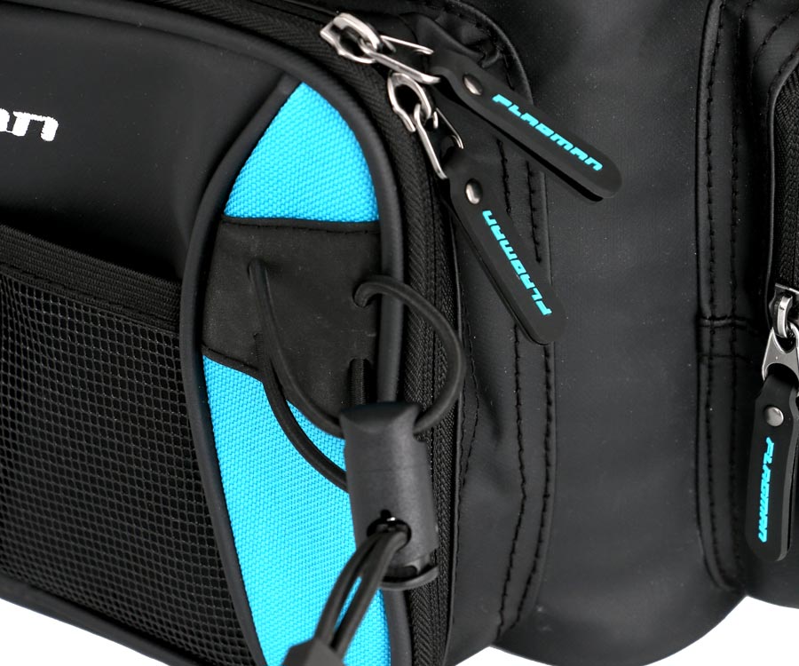 Удобная и компактная сумка на молнии с набором коробок. Сумка выполнена из прочной синтетической ткани. Оснащена двумя боковыми карманами и одним фронтальным, причем на нем дополнительно предусмотрены два эластичных, стягивающихся шнура, которые способны зафиксировать, например, дождевик. Для транспортировки сумки используется наплечный ремень с эргономичной накладкой и ручки. В комплект входят четыре коробки из прозрачного пластика с ячейками для мелких рыболовных аксессуаров и принадлежностей. Размер коробки — 27х18х4см. Вес сумки с набором коробок — 1,75 кг.