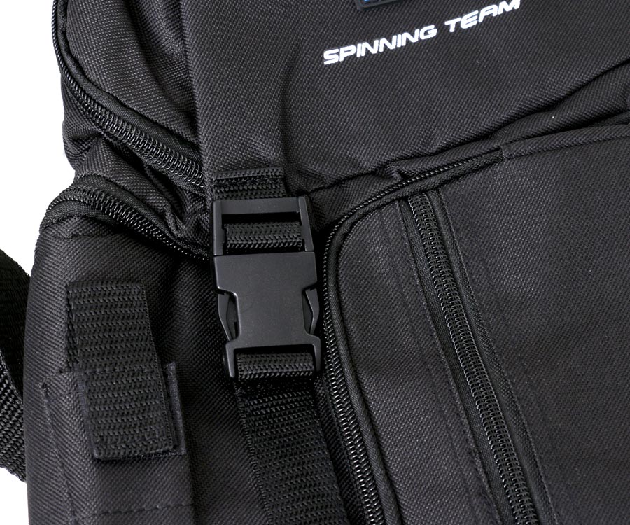 Универсальная разгрузочная сумка-рюкзак для рыболовных аксессуаров. Для переноски имеет удобную мягкую наплечную лямку с регулировочным и фиксирующим ремнями. Выполнена из прочного синтетического материала. Активные зоны на спинке усилены мягкими вкладышами и синтетической сеткой. Внутреннее пространство разделено на два отсека: небольшой верхний – для плаща и прочих компактных вещей, и более вместительный нижний с двумя прозрачными файлами на молниях (для поводков, крючков и пр. необъемных оснасток) и сеточкой – для переноски рыболовных принадлежностей, коробок с приманками и одежды. Снаружи рюкзак оснащен накладным карманом, поверх которого расположен карман "для мелочевки", оба кармана — на молниях. Также на лямке и на внешней стороне рюкзака предусмотрены мини-кармашки для инструмента с фиксацией последнего липучкой. Снизу имеется сеточка с резинкой – для бутылочки содовой.