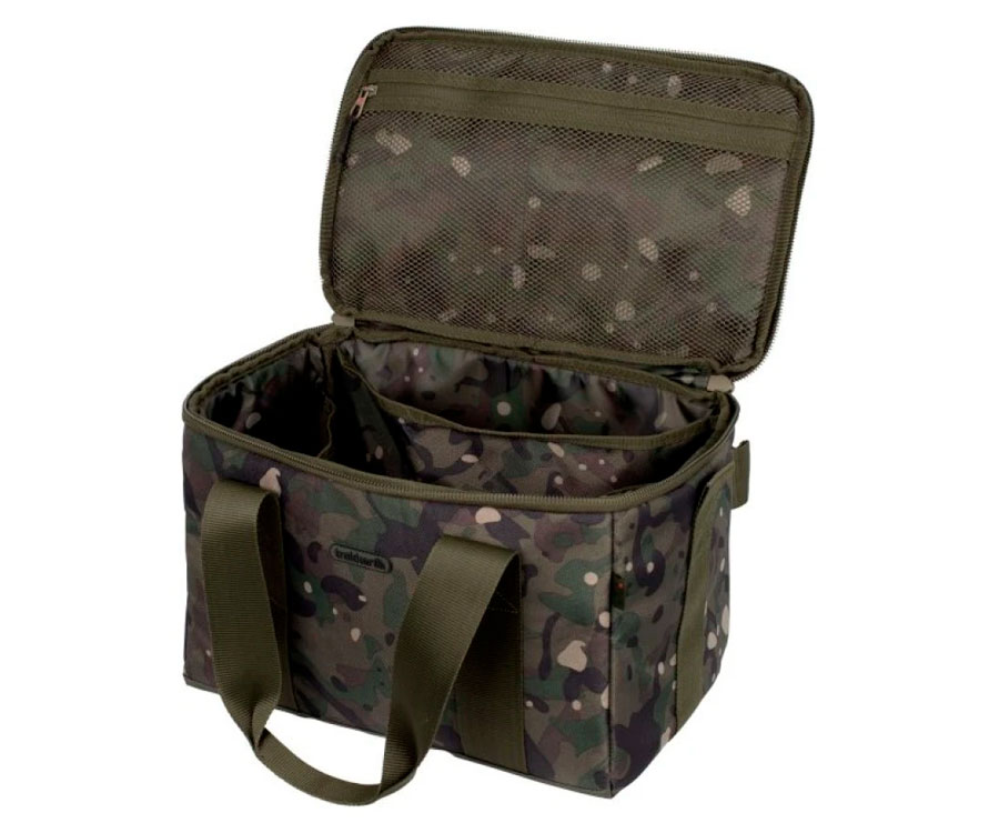 Trakker NXC Camo Cook-R Bag – это идеальное решение для хранения кухонных принадлежностей во время рыболовных поездок. Разработанная с мыслью об организации и защите содержимого, эта сумка имеет мягкие перегородки, которые не только поддерживают порядок, но также разделяют отдельные предметы, такие как кастрюли, сковородки и плиты. Дополнительно, на внутренней стороне крышки расположен сетчатый карман на молнии, который предлагает дополнительное место для других необходимых аксессуаров. Главное отделение сумки застегивается на крепкую, двустороннюю молнию, что обеспечивает легкий доступ с обеих сторон. Ручки, изготовленные из прочного неопрена и крепкие ремни из ткани, обеспечивают комфорт в переноске. На верху и сзади сумки находятся ткани, которые позволяют прикрепить альтернативный ремень для ношения на плече (не входит в комплект). Благодаря этому сумка может быть перенесена на плечи или надежно закреплена к раме тележки или лодки. Основание сумки изготовлено из прочного, водонепроницаемого ПВХ, что обеспечивает защиту от влаги и грязи. Материал n-dura Performance в уникальном камуфляжном дизайне Trakker придает сумке современный и стильный вид, одновременно обеспечивая долговечность и устойчивость к тяжелым условиям.