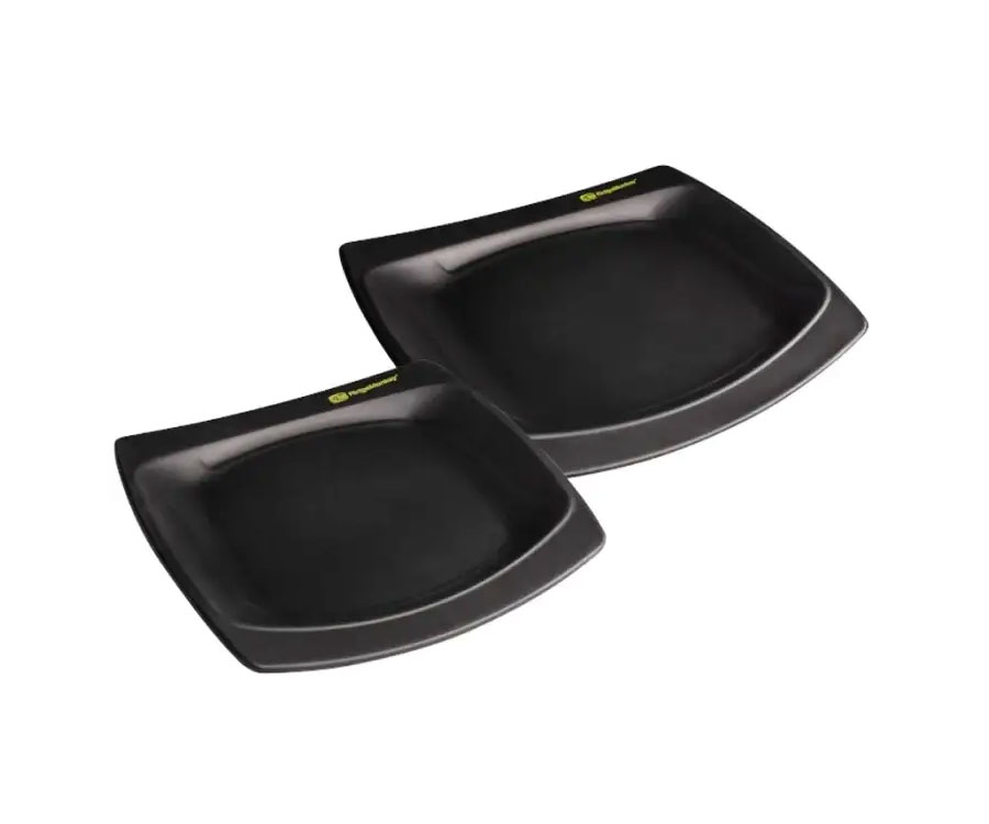 Тарелки Ridge Monkey DLX, легкие, крепкие, с квадратной формой для удобства хранения. Изготовлены из прочного меламинового пластика без BPA и брендингом Ridge Monkey на обед.