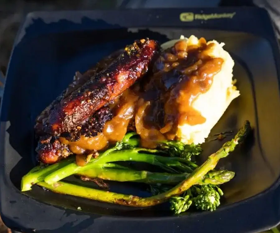 Тарелки Ridge Monkey DLX, легкие, крепкие, с квадратной формой для удобства хранения. Изготовлены из прочного меламинового пластика без BPA и брендингом Ridge Monkey на обед.