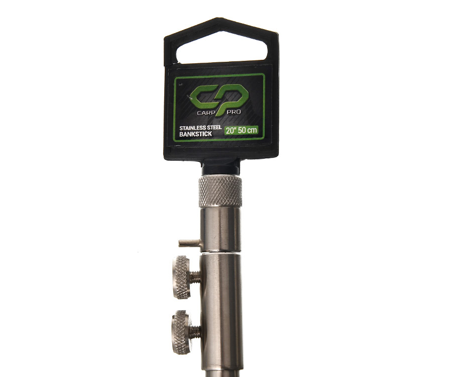 Carp Pro Stainless Steel Bankstick – телескопическая стойка из нержавеющей стали. Не имеет ни одной пластмассовой детали и отличается высокой надежностью и современным дизайном. Для максимально надежной фиксации верхняя часть стойки (внутренний прут) крепится к нижней части двумя винтами. Винты можно закрутить от руки либо при помощи отвертки: на головках винтов есть насечка и шлицы под отвертку. Нижняя часть снабжена острием, легко проникающим в грунт. Резьба позволяет установить на стойку Carp Pro Stainless Steel Bankstick буз-бар, сигнализатор поклевки, держатель комля и т.п., а широкая контргайка и стержень-упор для пальца – надежно зафиксировать установленное оборудование в нужном вам положении. Банкстик телескопический Carp Pro Stainless Steel Bankstick 20" имеет длину 50-90 см.