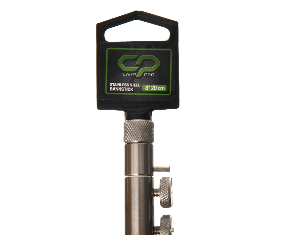 Carp Pro Stainless Steel Bankstick – телескопическая стойка из нержавеющей стали. Не имеет ни одной пластмассовой детали и отличается высокой надежностью и современным дизайном. Для максимально надежной фиксации верхняя часть стойки (внутренний прут) крепится к нижней части двумя винтами. Винты можно закрутить от руки либо при помощи отвертки: на головках винтов есть насечка и шлицы под отвертку. Нижняя часть снабжена острием, легко проникающим в грунт. Резьба позволяет установить на стойку Carp Pro Stainless Steel Bankstick буз-бар, сигнализатор поклевки, держатель комля и т.п., а широкая контргайка и стержень-упор для пальца – надежно зафиксировать установленное оборудование в нужном вам положении. Банкстик телескопический Carp Pro Stainless Steel Bankstick 8" имеет длину 20-30 см.
