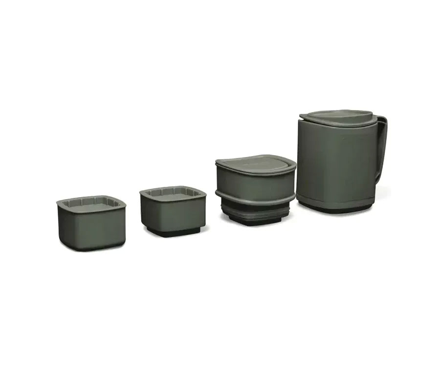 Термокружка ThermoMug стала намного лучше, так как мы превратили ее в универсальный модульный набор для приготовления кофе. В набор входят три водонепроницаемых контейнера, которые идеально подходят для ThermoMug и содержат все необходимое, например чай, кофе и сахар. Идеально подходит для тех, кто любит экономить место и не брать с собой кухонную утварь вместе с полными банками кофе, пакетиками сахара или коробками с чайными пакетиками. Доступен в цветах Gunmetal Grey и Gunmetal Green.