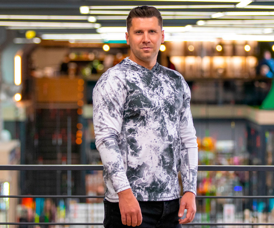 Новая линейка термоджерси Flagman Dark Stone с капюшоном призвана обеспечить рыболову, охотнику, туристу или любителю активного отдыха на свежем воздухе тепло и комфорт в любых погодных условиях. Термоджерси Flagman произведены из уникальной технологической ткани ALPINA Thermoactive – запатентованного материала для термобелья, который создан из микрополиэстера с добавлением эластана. Он имеет сверхлёгкие и одновременно сверхпрочные волокна, что позволяет изготовить объёмный материал с удивительными свойствами по прочности и воздухопроницаемости, а дополнительный микроначёс из тонкого слоя флиса способствует повышению сбережения тепла. Термо джерси Flagman Dark Stone выполнено в стильном дизайне по технологии плоского шва, имеет свободный крой, не деформируется во время носки, может использоваться как самостоятельное изделие, второй слой термобелья, или же как утепляющий слой в многослойной системе одежды. Такое джерси рассчитано на среднюю и низкую физическую активность и станет отличным вариантом для использования зимой или в межсезонье, когда температура воздуха колеблется от +5 до -15°С. Доступны размеры S, M, L, XL, XL, XXL, XXXL.