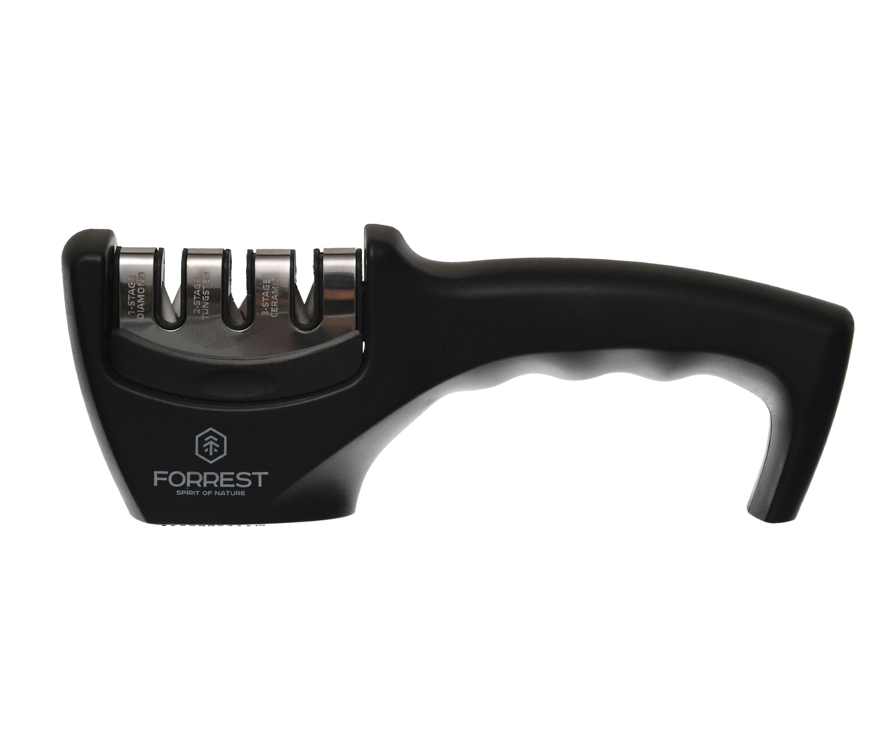 Точилка для ножей Forrest 3-Stage Sharpener – это удобное и эффективное решение для быстрой и качественной заточки ножей в домашних или походных условиях. Оснащённая трёхступенчатой системой, она позволяет не только восстановить сильно затупленные лезвия, но и поддерживать идеальную остроту на регулярной основе. Первая ступень – грубая заточка, с крупным абразивом с алмазным напылением, быстро формирует режущую кромку. Вторая – средняя заточка, с абразивом средней зернистости из карбида вольфрама, предназначена для выравнивания и доводки режущей кромки. Третья – полировка на керамическом камне, которая обеспечивает чистовую обработку и идеальную гладкость лезвия. Эргономичная ручка и противоскользящее основание обеспечивают безопасность и комфорт при использовании инструмента. Forrest 3-Stage Sharpener подходит для большинства кухонных, туристических и складных ножей, делая точилку универсальным помощником для дома, рыбалки или туристических походов.
