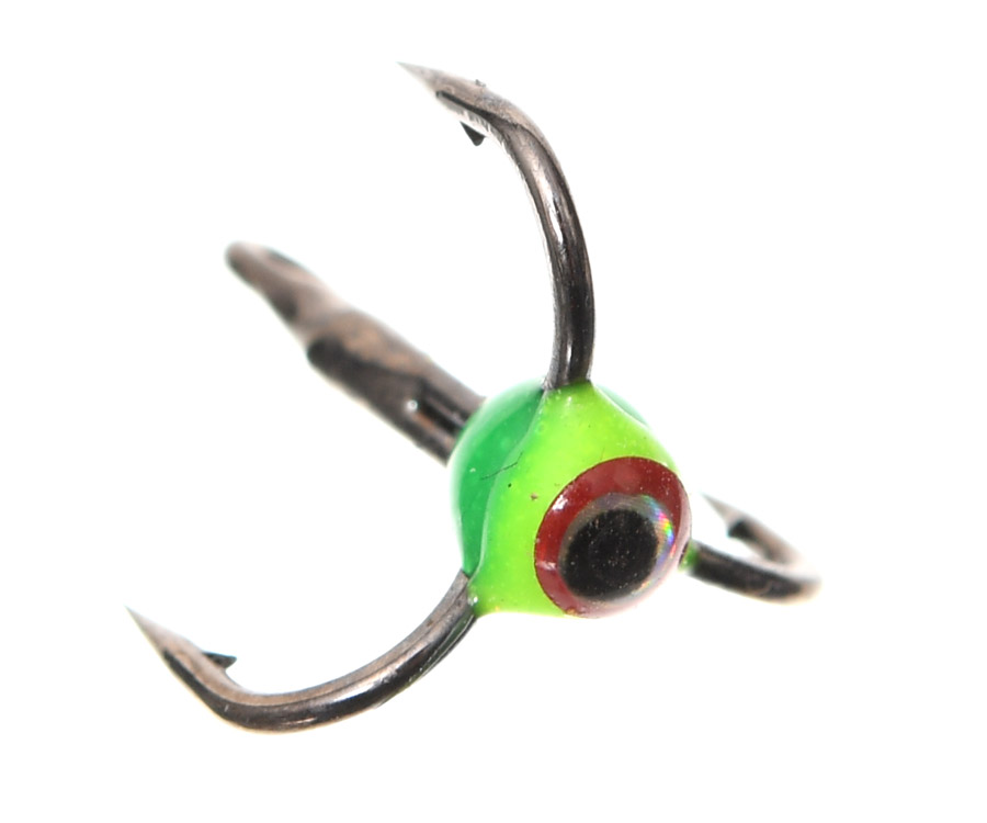 Тройник Flagman с флуоресцентной цветной каплей и глазком чаще всего используют для повышения уловистости балансиров. Также он прекрасно зарекомендовал себя в качестве подвески в зимних блеснах для отвесной ловли. Кроме того, он хорош и как самостоятельная приманка: чаще всего в качестве скользящего тройника над «пирамидкой», «бокоплавом», «цикадой» и т.п. Благодаря ярким флуоресцентным цветам «капли» и свечению под воздействием ультрафиолетовых лучей эта искусственная приманка великолепно заметна в темной воде даже на больших глубинах. Тройник имеет высокое качество изготовления и очень острые жала. Цвет капли: зелёный/жёлтый. Покрытие тройника: Black Nickel.