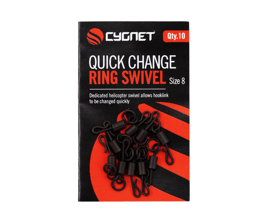 Вертлюг Cygnet QC Ring Swivel («быстросъем» с кольцом) изготовлен из высококачественной нержавеющей стали с темным покрытием. Идеален для карповых монтажей Helicopter, Chod, Ronnie Rig и позволяет быстро заменить поводок. Черное матовое покрытие не допускает бликов, отпугивающих рыбу. Размер: № 8.