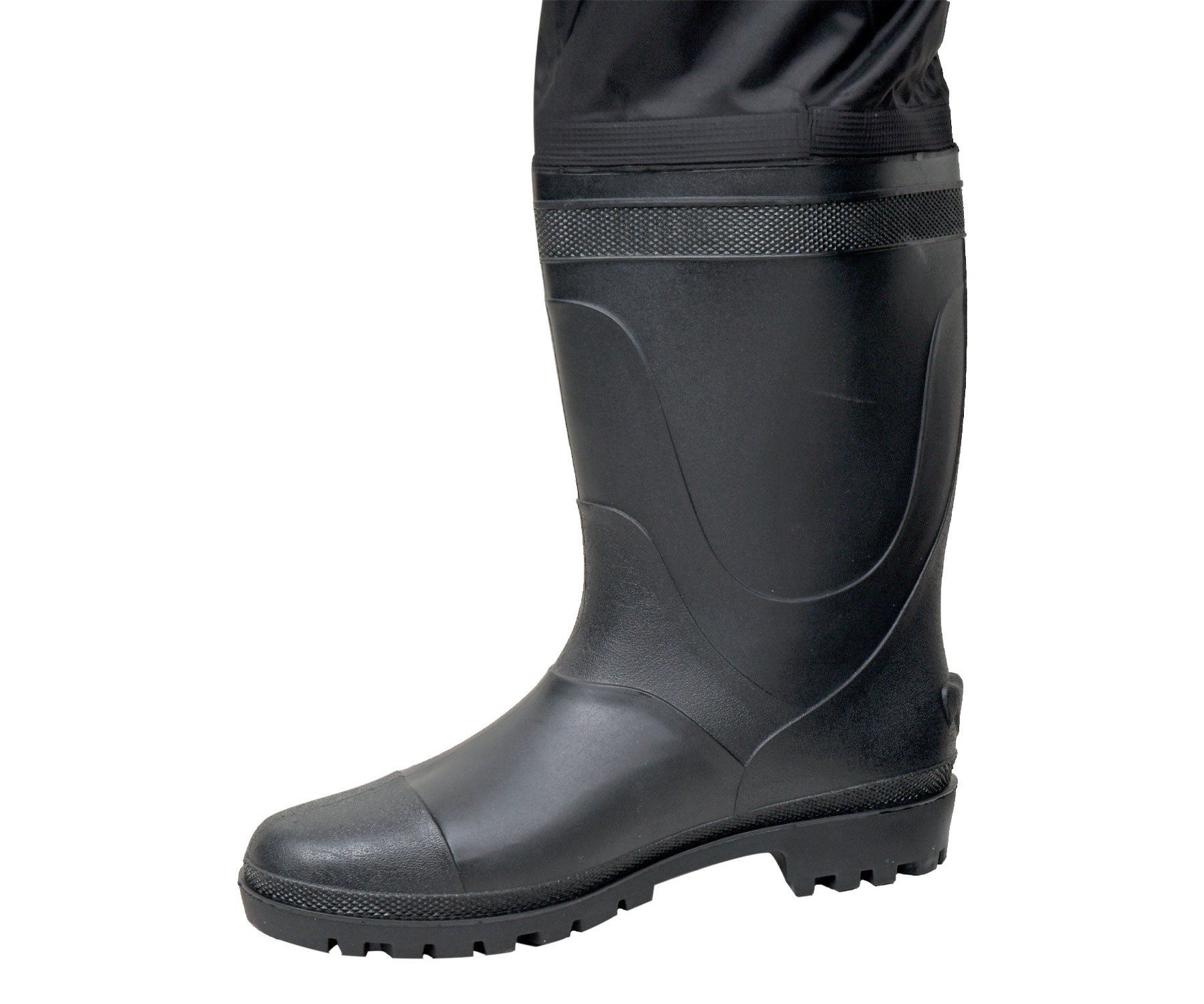 Забродный полукомбинезон Flagman PRO идеально подойдёт для рыбалки и охоты в самых разных погодных условиях. Забродный костюм изготовлен из лёгкого, обладающего хорошей эластичностью и высокой прочностью водонепроницаемого ПВХ-материала с интегрированными в него сапогами. Прочные резиновые сапоги имеют вклеенные внутрь неопреновые вставки, предохраняющие ноги от переохлаждения, а также износостойкую подошву с толстым глубоким протектором, который предотвращает скольжение на илистом грунте. Шов соединения с сапогами и швы кроя прочно сварены, что исключает любые протекания воды и обеспечивает полную герметичность изделия. Удобные широкие шлейки полукомбинезона имеют надёжные пластиковые застёжки фастекс и регулируются по высоте в соответствии с ростом пользователя. Также в конструкции вейдерсов Flagman PRO предусмотрены шлёвки под ремень + регулируемый поясной ремень на застёжке фастекс, а также два вместительных нагрудных кармана, закрывающихся на водонепроницаемые молнии. ПВХ вейдерсы Flagman позволяют находиться продолжительное время в воде, не испытывая дискомфорта, не требуют специального ухода, не боятся низких температур и устойчивы к воздействию ультрафиолетового излучения.