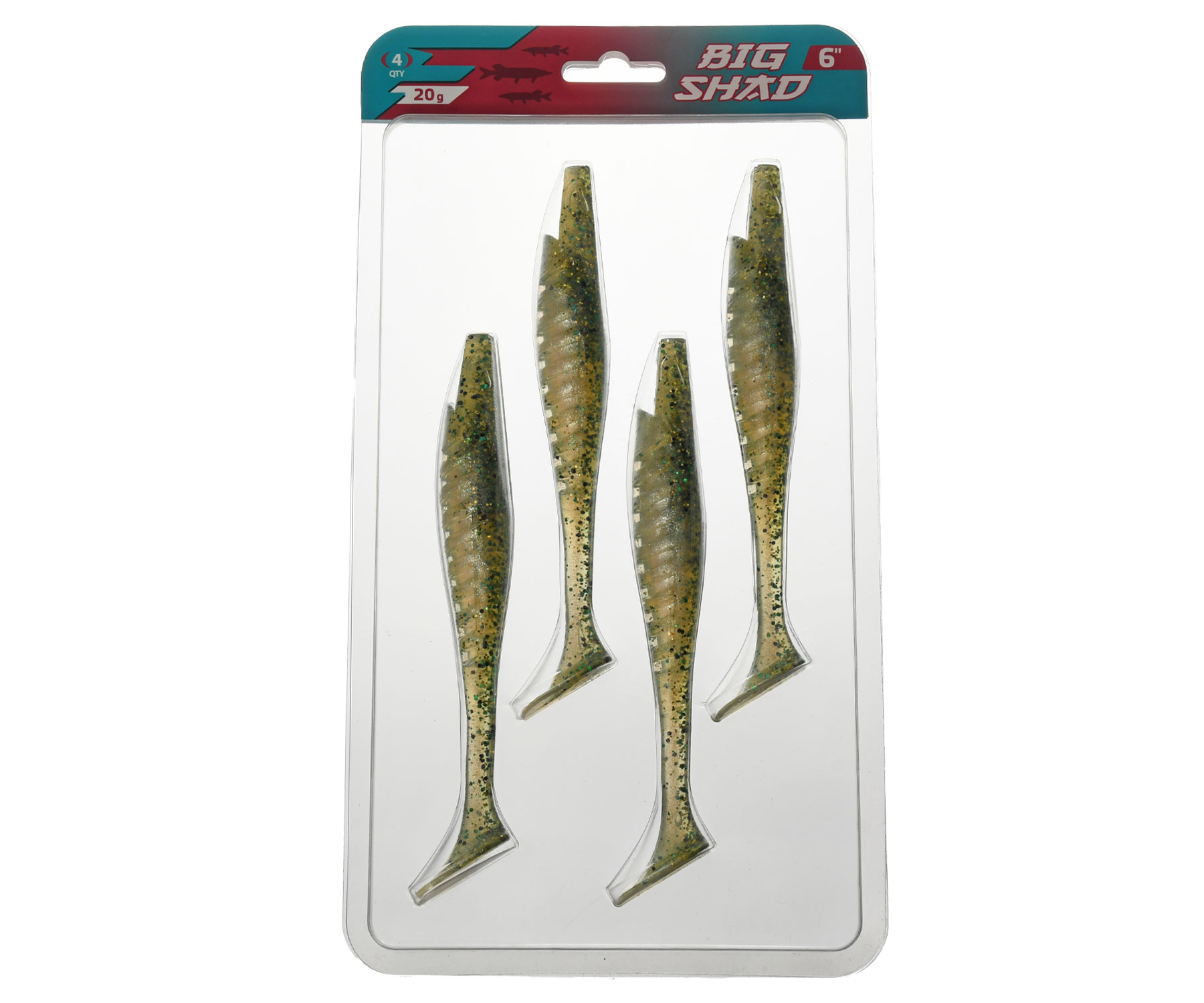 Flagman Big Shad 6" – крупный виброхвост удлинённой формы, изготовленный из мягкого силикона. Тело приманки сплющено с боков, сверху и снизу имеются специальные прорези, оптимизирующие использование Flagman Big Shad с офсетным крючком. Благодаря объёмной пятке виброхвост начинает играть даже при самой медленной проводке. Игра его лёгкая и размашистая. Колебания хвоста передаются на тело, благодаря чему приманка раскачивается при проводке, привлекая хищника с больших расстояний. На теле Big Shad имеются специальные насечки, которые создают привлекательную для хищника турбулентность. Приманка отлично работает на классической джиг-головке, шарнирном монтаже, штопоре. Модель прекрасно подойдёт для ловли трофейного судака, щуки и сома. Большой рыбе – крупная приманка, – это как раз о Flagman Big Shad!