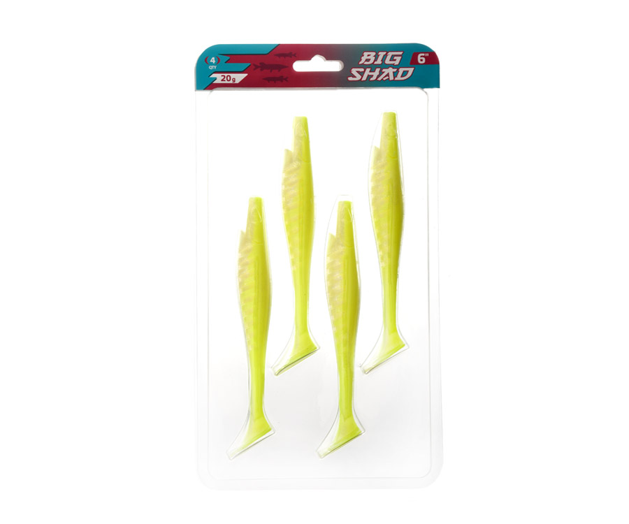 Flagman Big Shad 6" – крупный виброхвост удлиненной формы, изготовленный из мягкого силикона. Тело приманки сплющено с боков, сверху и снизу имеются специальные прорези, оптимизирующие использование Flagman Big Shad с офсетным крючком. Благодаря объемной пятке виброхвост начинает играть даже при самой медленной проводке. Игра его легкая и размашистая. Колебания хвоста передаются на тело, благодаря чему приманка раскачивается при проводке, привлекая хищника с больших расстояний. На теле Big Shad имеются специальные насечки, которые создают привлекательную для хищника турбулентность. Приманка отлично работает на классической джиг-головке, шарнирном монтаже, штопоре. Модель прекрасно подойдет для ловли трофейного судака, щуки и сома. Большой рыбе – крупная приманка, – это как раз о Flagman Big Shad!